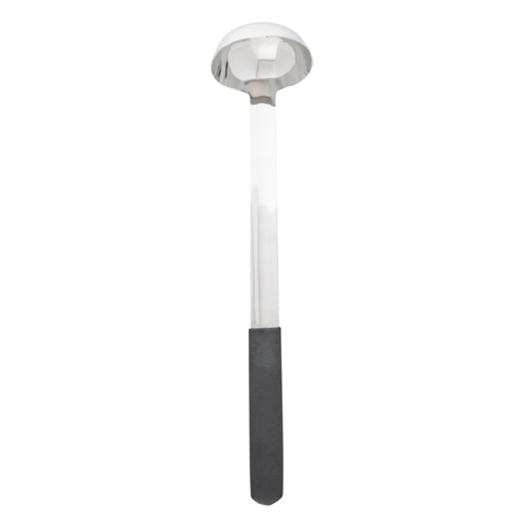 The Tablecraft AM5312BK Antimicrobial Ladle is a precision-engineered kitchen utensil designed for durability and hygiene, making it a versatile tool for various culinary environments. With a capacity of 2 oz., this ladle is ideally suited for precise portion control in foodservice operations. Its dimensions, 2-7/8" x 2-1/2" x 12-5/8", ensure ease of use and efficient reach across different cooking vessels. Constructed from 18-0 stainless steel, this ladle offers robustness and resistance to corrosion, essential for maintaining its longevity in high-usage settings. The black handle is not only ergonomic but also enhances the ladle’s aesthetic appeal, complementing modern kitchen designs. Its antimicrobial properties provide an additional layer of safety by inhibiting the growth of bacteria, making it an invaluable tool in maintaining hygiene standards. The Tablecraft AM5312BK is dishwasher safe, facilitating easy and thorough cleaning, saving time and labor costs in busy kitchens. This ladle is optimal for various industry segments, including restaurants, catering services, and institutional dining facilities, where precise serving and hygiene are paramount. Its blend of functionality, durability, and safety make it a notable choice for professionals seeking reliable kitchen equipment.
