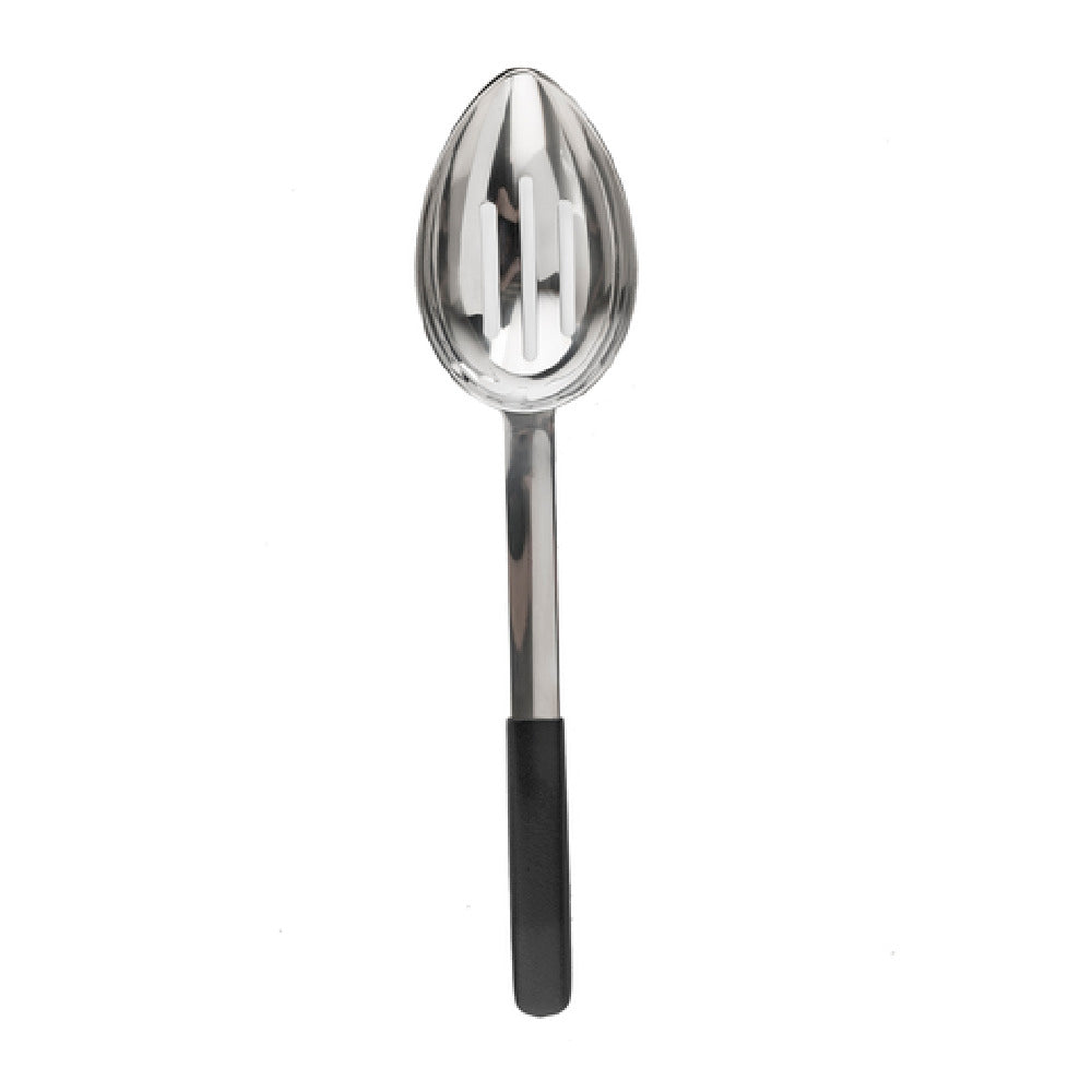 The Tablecraft AM5344BK Antimicrobial Serving Spoon is designed for professionals who demand precision and hygiene in their culinary tools. With a capacity of 4 oz., this serving spoon is ideal for portion control in any food service setting. Measuring 13-3/4" x 3" x 1-1/5", it provides a comfortable and generous size for serving. The slotted design is perfect for straining and serving foods with excess liquid, adding practicality to its functionality. The spoon features a black handle, offering a sleek aesthetic that complements any kitchen or serving environment. Crafted from 18-8 stainless steel, it promises durability and resistance to rust and corrosion, ensuring longevity in professional kitchens. Importantly, the antimicrobial property of this serving spoon enhances hygiene, making it suitable for environments where cleanliness is paramount. Additionally, being dishwasher safe, it allows for easy and efficient cleaning, which is crucial in high-paced food service operations. This serving spoon is an invaluable tool for chefs, caterers, and foodservice professionals who prioritize both functionality and hygiene in their culinary practices.
