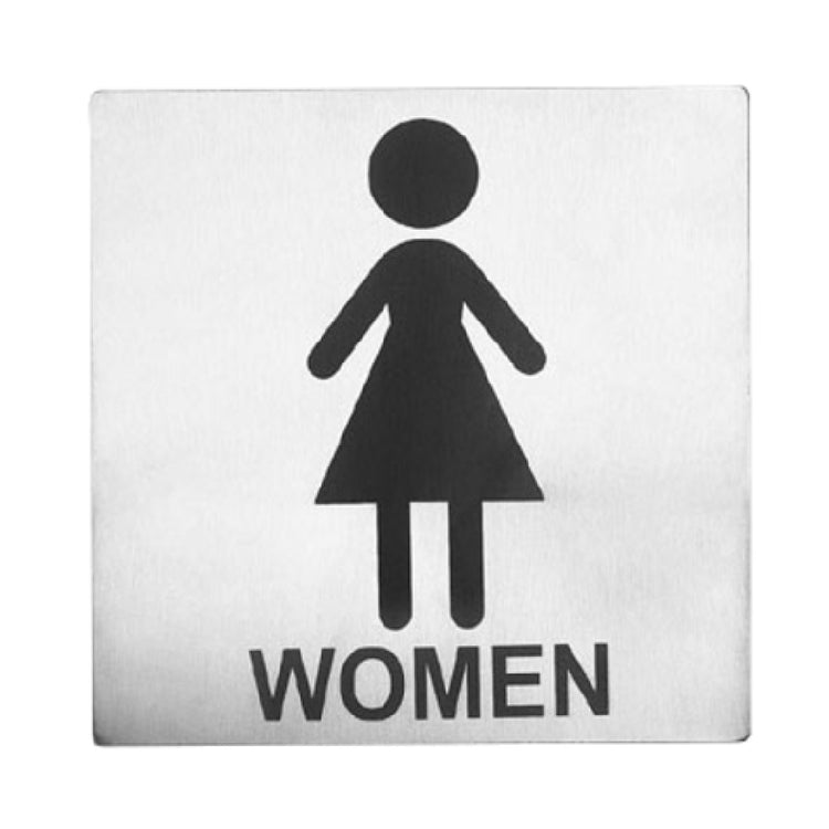 The Tablecraft B11 Cash & Carry Sign - 5" X 5" "Women Restroom" is a meticulously designed signage solution that combines functionality with durability, ideal for diverse segment markets such as hospitality, corporate offices, healthcare facilities, and retail environments. This sign features a compact size of 5 inches by 5 inches, making it the perfect fit for various spaces without overwhelming the decor. Crafted from high-quality stainless steel, it ensures longevity and resistance to wear and tear, even in high-traffic areas. The pressure-sensitive adhesive backing provides a reliable and easy installation process on a multitude of surfaces, eliminating the need for additional hardware or tools. The clear and universally recognized "Women Restroom" indication on the sign ensures clear communication, enhancing user experience and accessibility. This product is particularly valuable in maintaining standardized and professional restroom identification, aligning with industry norms for signage in public and private enterprises. The Tablecraft B11 sign's sleek design and robust construction make it a strategic choice for facilities managers and business owners seeking an effective and aesthetically pleasing restroom signage solution.