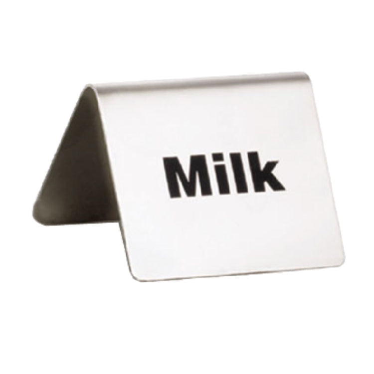 The Tablecraft B5 Buffet Tent "Milk" 2-1/2" x 2-3/4" is a sleek and functional addition to any buffet setting, crafted with precision from durable stainless steel. This tent card is meticulously designed to provide clear and concise labeling, measuring at 2-1/2 inches by 2-3/4 inches, making it easily visible yet unobtrusive on any display. Its stainless steel construction not only ensures longevity but also adds an elegant touch to buffet presentations, seamlessly blending with upscale dining environments or casual settings alike. The "Milk" label is prominently displayed, aiding in straightforward identification, which is particularly valuable in settings where allergen information or dietary preferences are crucial. This product is hand wash only, ensuring that the high-quality finish is maintained over time without the risk of damage that might occur with machine washing. Ideal for a range of market segments from high-end restaurants to catering services, the Tablecraft B5 Buffet Tent effectively combines utility with style. Its precise dimensions and resilient material make it a staple for professionals seeking reliable and aesthetically pleasing buffet accessories. By choosing this product, users can enhance their service efficiency, maintain organized displays, and uphold presentation standards with minimal effort.