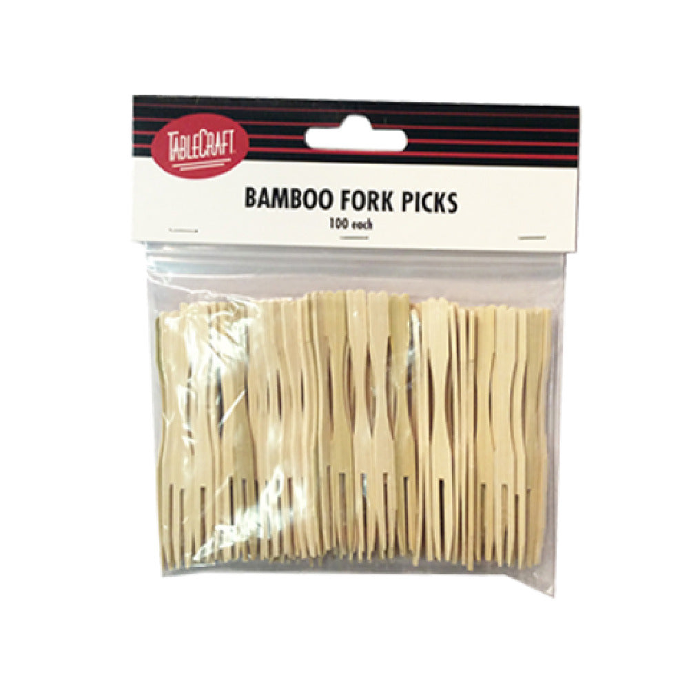 Tablecraft BAMF35 Cash & Carry Fork Pick 3-1/2" Bamboo (100 Per Pack) (must Be Purchased In Multiples Of 12 Packs) - 12/Pack
