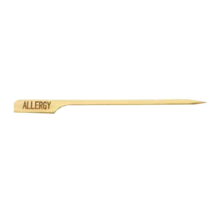 Tablecraft BAMP45A Cash & Carry Allergy Pick 4-3/4" Bamboo (100 Per Pack) is a meticulously designed product tailored for the food service industry, particularly catering to establishments prioritizing allergy awareness and customer safety. Each pick measures 4-3/4 inches, crafted from sustainable bamboo, reflecting an environmentally conscious choice for any dining setting. The package contains 100 picks, ensuring that businesses can adequately cater to large numbers of customers with varying dietary needs. A unique purchasing requirement stipulates that these picks must be purchased in multiples of 12 packs, aligning with bulk purchasing trends in the industry and catering to high-demand environments. These allergy picks are specifically designed to assist in clearly identifying foods that are safe for individuals with allergies, thus enhancing the dining experience by reducing the risk of cross-contamination. Their use is ideal for a variety of segments including restaurants, catering services, event organizers, and other food service providers who are committed to maintaining high safety standards. The Tablecraft BAMP45A stands out as a crucial tool for fostering an inclusive dining experience, enabling businesses to cater responsibly and effectively to the dietary needs of their guests.