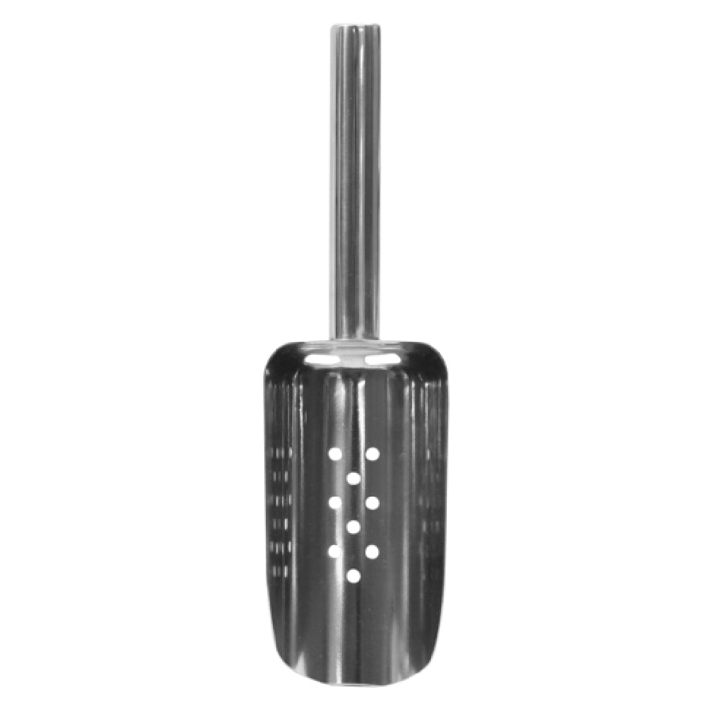 The Tablecraft BSC0610 Ice Scoop 6-10 Oz. With Drain Holes is a versatile tool designed for both commercial and personal use within the food service industry. Constructed from high-quality 18-8 stainless steel, this ice scoop offers durability and resistance to corrosion, ensuring longevity even in demanding environments. The scoop's capacity ranges from 6 to 10 ounces, making it suitable for efficiently handling various ice quantities. An essential feature of this scoop is the incorporation of drain holes, which facilitate the quick drainage of excess water, thereby preventing dilution of beverages. This functionality is particularly advantageous for bars, restaurants, and catering services that require precision and speed in ice handling. Additionally, the scoop is dishwasher safe, ensuring ease of cleaning and maintaining hygiene standards in fast-paced settings. The combination of practicality and robust construction positions the Tablecraft BSC0610 Ice Scoop as a valuable asset for any food service operation, offering efficiency and reliability in ice management tasks.