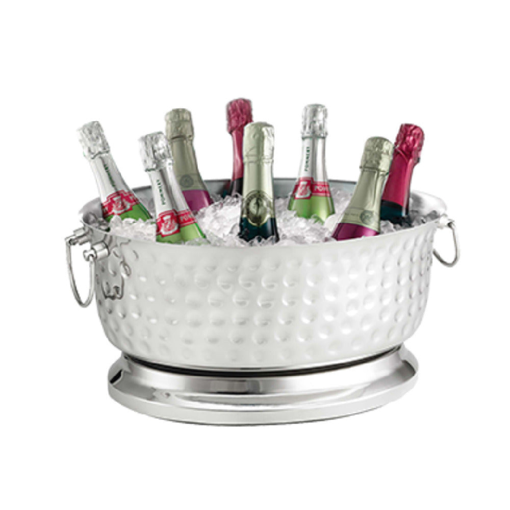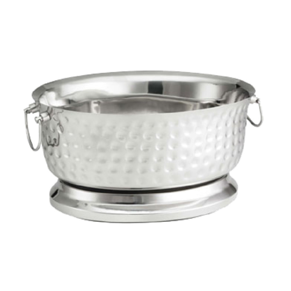 The Tablecraft BT1815 Bali Collection™ Beverage Tub stands out with its generous 4-9/10 gallon capacity, making it perfect for catering to large groups at events or gatherings. Measuring 18 inches in length, 15-1/4 inches in width, and 8-3/4 inches in height, this oval-shaped tub provides ample space for ice and beverages, ensuring they remain chilled and accessible. Its double-wall construction not only helps in maintaining the cold temperature for extended periods but also minimizes condensation on the exterior, keeping your serving area dry and clean. Crafted from high-quality stainless steel, the beverage tub promises durability and resistance to corrosion, adding a sleek, modern touch to any setting, whether casual or formal. For convenience, the tub is dishwasher safe, making cleanup effortless after any event. The Tablecraft BT1815 is ideal for various markets, including catering companies, restaurants, hotels, and event planners, offering a reliable and stylish solution to beverage presentation and service.