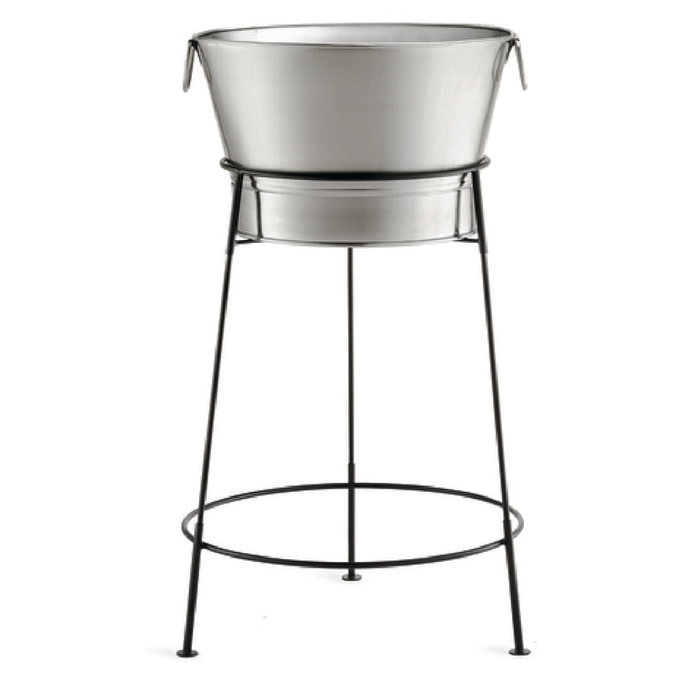 The Tablecraft BTSD21 Beverage Tub Set is a versatile and robust solution for beverage service, boasting a 7-gallon capacity that accommodates a range of events and catering needs. This set includes a double-wall tub and a stand, ensuring durability and stability during use. The tub, measuring 21-3/4" x 21-3/4" x 37-1/2" overall, is crafted from stainless steel, offering exceptional resistance to corrosion and is dishwasher safe for convenient cleaning. The accompanying stand is built with a black powder-coated finish, providing a sleek appearance and added protection against wear and tear. This combination of materials not only enhances the product's longevity but also its aesthetic appeal, making it suitable for both professional and casual settings. The Tablecraft BTSD21 Beverage Tub Set is ideal for restaurants, hotels, and event venues that require efficient and stylish beverage service options. Its significant capacity and sturdy construction make it a valuable addition to any setting where beverages are served, delivering practicality without compromising on design.