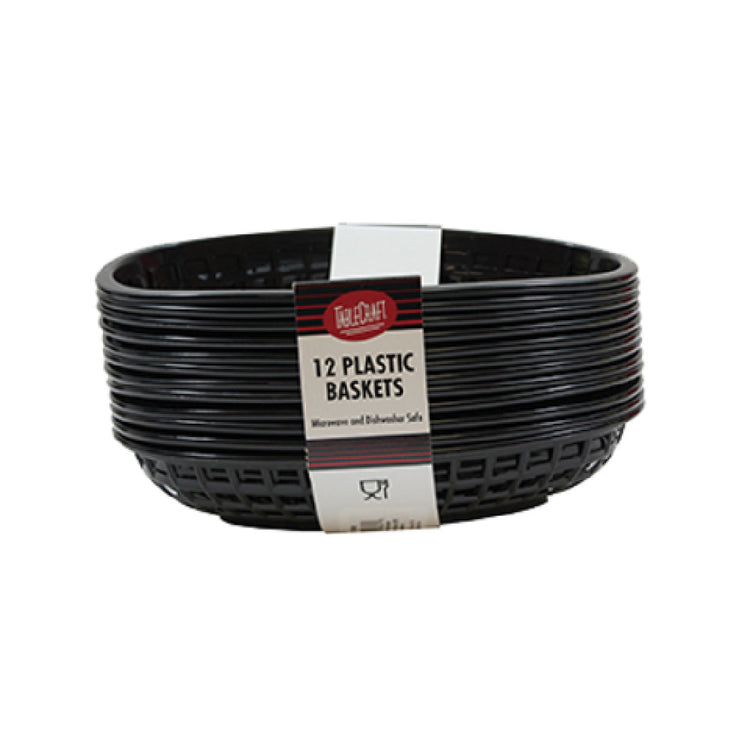 The Tablecraft C1074BK Cash & Carry Classic Baskets are expertly designed to cater to various market segments within the foodservice industry. With dimensions of 9-1/4" x 6" x 1-3/4", these oval baskets provide an ideal solution for serving and display needs. Crafted from durable plastic, these baskets are heat resistant up to 150°F/65°C, allowing them to withstand temperature variations while maintaining their structural integrity. Their compatibility with heat lamps, dishwashers, and microwaves adds a layer of convenience and versatility, making them suitable for both commercial kitchens and casual dining establishments. The sleek black design of these baskets complements any table setting, enhancing the overall dining experience. Manufactured in the USA, the Tablecraft C1074BK baskets come in display merchandise packs of 12, and must be purchased in multiples of 3 packs, ensuring cost-effective procurement for businesses of all sizes. These baskets are an excellent choice for restaurants, catering services, and food delivery operations, providing a reliable and visually appealing solution for presenting a wide array of culinary creations.