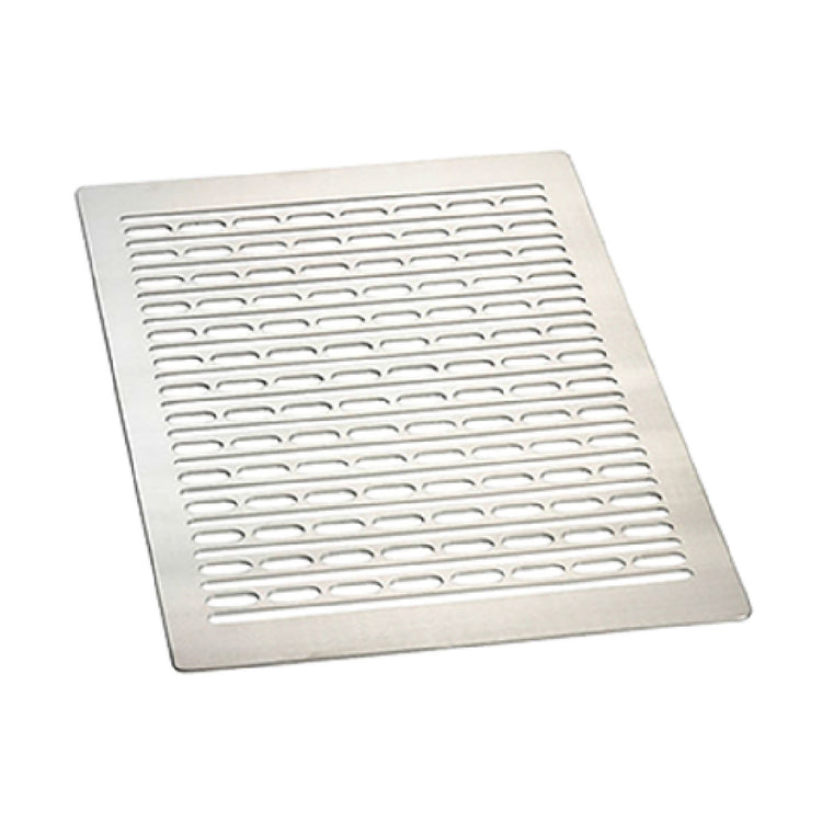 The Tablecraft CW1010BRS Cold Food Template is a meticulously designed single well unit measuring 12-7/8" x 21-1/4", crafted to enhance cold food presentation and preservation in various foodservice environments. Constructed from high-quality stainless steel with a brushed finish, this template not only boasts durability but also a sleek aesthetic that complements any professional setting. The inclusion of strategically placed holes allows for optimal cold air circulation, ensuring that food items remain fresh and visually appealing, making it an essential tool in buffet setups and catering services. Its dishwasher-safe feature provides convenience and ease of maintenance, ensuring high standards of hygiene and efficiency in busy kitchen operations. With NSF-7 certification, the Tablecraft CW1010BRS meets rigorous public health standards, assuring operators of its reliability and safety in foodservice applications. This cold food template is particularly beneficial for venues that prioritize both functionality and style, such as hotels, restaurants, and event spaces, where the presentation of cold dishes is a key aspect of the dining experience. Its robust construction and thoughtful design make it a valuable asset for any establishment aiming to elevate their cold food display capabilities.