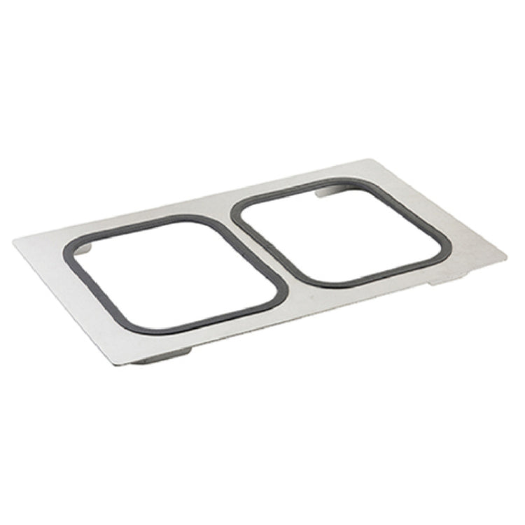 Tablecraft CW1104RSS Tri-Ply Serveware Templates - with dimensions of 21-5/8" x 13-1/2" - are specifically designed to fit either (2) 123508 or 123507 models, offering versatility for various serving needs. Crafted from 12-gauge stainless steel, these templates are built for durability and long-lasting use in demanding food service environments. The random swirl finish not only enhances the aesthetic appeal but also adds a unique texture to the surface. The inclusion of silicone gaskets around the cut-outs ensures a secure fit and minimizes movement, making these templates a practical choice for professional chefs and caterers who require stability and efficiency during service. Additionally, being dishwasher safe, they promise ease of cleaning and maintenance, essential for fast-paced kitchen operations. The Tri-Ply construction offers excellent heat distribution and retention, making them suitable for maintaining optimal serving temperatures. Perfect for use in both commercial kitchens and catering events, the Tablecraft CW1104RSS Tri-Ply Serveware Templates embody a blend of functionality and style, tailored to meet the expectations of food service professionals seeking reliable and aesthetically pleasing serveware solutions.