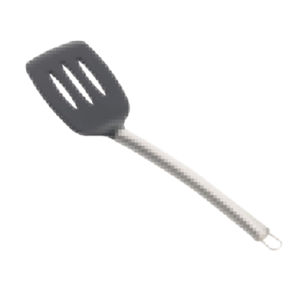 The Tablecraft CW402 Serving Spatula - 14" Long Slotted - is a high-performance utensil designed for both professional kitchens and home culinary enthusiasts. Featuring a robust 14-inch length, it provides optimal reach and control for serving and flipping a variety of foods. The spatula is expertly crafted with a high-quality stainless steel handle, ensuring durability and a comfortable grip, making it suitable for frequent use in busy environments. The silicone head offers a gentle yet firm hold on delicate foods, reducing the risk of damage, while the slotted design allows for efficient draining of excess liquids, making it ideal for serving dishes with sauces or oils. The black color of the silicone head adds a sleek and modern aesthetic, making it a stylish addition to any kitchen setting. The versatile design of the Tablecraft CW402 Serving Spatula caters to multiple market segments, including restaurants, catering services, and home cooks, providing an effective tool for a diverse range of serving tasks. This spatula stands out for its combination of functional design, durable materials, and user-friendly features, making it an indispensable tool in various culinary applications.