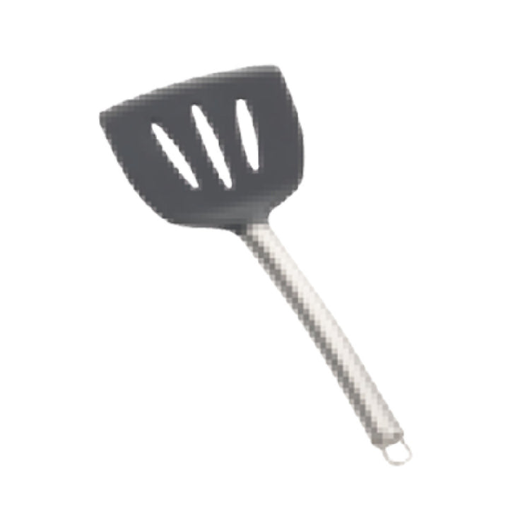 The Tablecraft CW403 Serving Spatula 14"-Long Wide is an essential tool for professional and home kitchens, specifically designed to provide both functionality and durability. Measuring 14 inches in length, this spatula is crafted with a slotted wide head, ideal for serving and plating a variety of dishes with precision. Its head is made from high-quality silicone, a material known for its non-stick properties and heat resistance, making it suitable for use with hot foods without risk of damage. The spatula features a stainless steel handle, offering a sturdy grip and ensuring long-lasting use. The sleek black design of the spatula adds a modern touch to its practical utility, making it a versatile choice for chefs and culinary enthusiasts alike. Whether used in a bustling restaurant kitchen or for home entertaining, the Tablecraft CW403 Serving Spatula combines aesthetics and performance, standing out as a reliable tool for serving needs. Its specific design caters to different segments of the culinary industry, from professional chefs requiring high-performance tools to home cooks seeking durable kitchenware. The unique combination of a silicone head and stainless steel handle makes it a standout product in its category, offering exceptional value through its thoughtful design and quality construction.