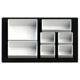 The Tablecraft CW5088MBS Cold Food Template is meticulously crafted to seamlessly integrate with your culinary setup, offering precise dimensions of 25-3/4 inches by 21-1/4 inches. This cold food template is expertly designed to accommodate one CW4004, one CW4002, one CW4026, and four CW4024 configurations, making it an essential tool for those seeking versatility and efficiency in food presentation. It is constructed from smooth aluminum with a striking midnight blue speckle finish, ensuring durability and style. Specifically engineered for cold holding applications, this template maintains optimal food temperatures, aligning with industry standards for safety and quality with its NSF-7 certification. The dishwasher-safe feature ensures easy maintenance and hygiene, a crucial aspect for catering services, buffets, and restaurants aiming to uphold high sanitary standards. The thoughtful design and practical dimensions make the Tablecraft CW5088MBS Cold Food Template an indispensable asset for foodservice professionals looking to enhance their service efficiency and presentation aesthetics.
