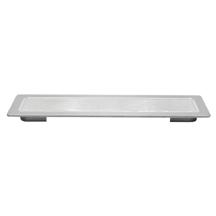 Tablecraft CW6424WV Hot Well Cover is a versatile solution designed to meet the needs of diverse segments within the food service industry. This hot well cover is crafted from 1/4" aluminum, offering both durability and lightweight handling. Its dimensions of 6-3/8" x 21-5/8" make it suitable for a range of applications, providing a perfect fit for 1/2 long size wells. The cover features an elegant wave pattern that not only enhances its visual appeal but also contributes to its efficient heat retention properties, ensuring consistent performance in maintaining optimal food temperatures. This design is particularly beneficial for catering businesses, buffets, and other food service operations that require reliable and attractive solutions. Additionally, the Tablecraft CW6424WV is dishwasher safe, allowing for easy cleaning and maintenance, thereby supporting stringent hygiene standards in professional kitchens. Its robust construction and thoughtful design make it an indispensable tool for any establishment seeking efficiency without compromising on style or quality.