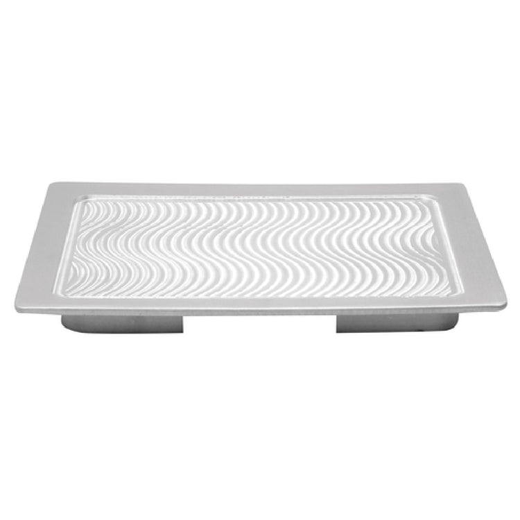 The Tablecraft CW6426WV Hot Well Cover - third size 13-1/2" x 6-7/8" - is a meticulously crafted accessory designed to enhance the functionality of food service operations. Constructed from durable 1/4" aluminum, this hot well cover features a distinctive wave pattern that not only adds a touch of style but also provides practical benefits. Its compatibility with standard third-size hot wells makes it an ideal choice for catering businesses, buffets, and restaurants aiming to maintain optimal heat retention and cleanliness in their service areas. The cover's dimensions, 13-1/2" x 6-7/8", ensure a snug fit, effectively minimizing heat loss and protecting food from contaminants. Moreover, its dishwasher-safe design simplifies the cleaning process, allowing for efficient maintenance and ensuring compliance with hygiene standards. The Tablecraft CW6426WV Hot Well Cover's robust construction and thoughtful design make it a valuable addition for any food service establishment looking to optimize its operations and deliver quality service consistently.
