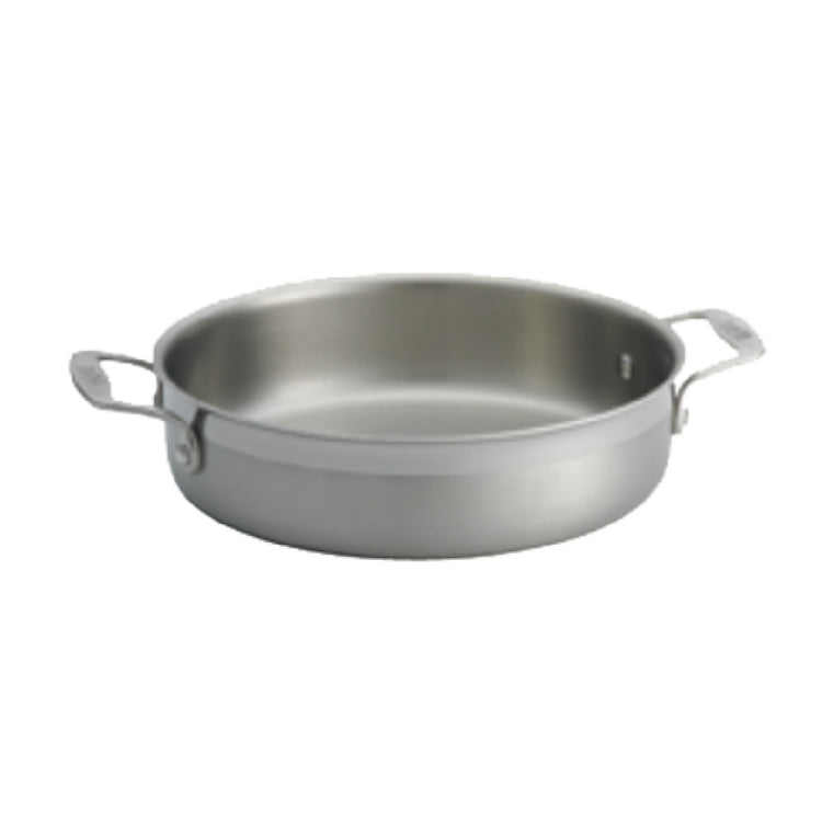 The Tablecraft CW7010 Brazier Pan, with a capacity of 3 quarts and a diameter of 10 inches, is an essential tool for culinary professionals seeking versatility and performance. This pan stands 2-1/2 inches tall and is equipped with two loop handles, offering ease of handling and maneuverability in a busy kitchen environment. Crafted with tri-ply construction, it combines the durability of stainless steel with the superior heat conductivity of coated aluminum, allowing for an even distribution of heat. This brazier pan is designed to be stove top, hot plate, gas, steam, induction, and oven safe, withstanding temperatures up to 500°F, making it suitable for various cooking methods and settings. Its compatibility with a wide range of heat sources makes it a valuable asset for diverse culinary applications, from searing to braising. Additionally, the pan is dishwasher safe, ensuring convenient and efficient cleaning. Certified by NSF, it meets high standards of safety and quality, making it a reliable choice for professional kitchens, catering services, and home cooking enthusiasts who prioritize performance and dependability in their cookware. The Tablecraft CW7010 Brazier Pan is a practical and durable solution for those looking to enhance their culinary creations.