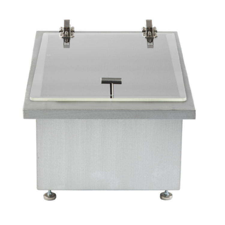 The Tablecraft CW8002LBRATCP Portable Insulated Ice Well - 18-1/8" x 26-7/8" x 11-1/2" - is a versatile and practical solution for various event and hospitality settings, providing exceptional insulation to maintain ice integrity. This single-unit ice well is designed to fit one full-size template, making it a compact yet effective choice for catering events, outdoor gatherings, or commercial use. The inclusion of an acrylic lid enhances its functionality by offering easy access while ensuring the ice remains protected from environmental elements. Constructed from aluminum with a brushed finish and copper, this ice well provides a durable and aesthetically pleasing option that complements a range of decors. The Tablecraft CW8002LBRATCP is ideal for businesses looking to optimize their service efficiency and product presentation, as it combines practicality with a sleek appearance. Whether employed in high-end cocktail parties, hotel buffets, or casual outdoor events, this ice well is engineered to deliver consistent performance, making it an essential addition to any professional's toolkit. Its dimensions and materials are precisely designed to ensure long-lasting use, reinforcing its status as a reliable and premium choice for maintaining the temperature of ice in various settings.