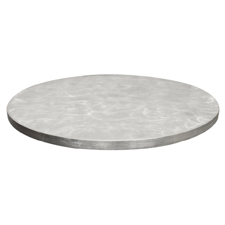 TableCraft CWALC3RSATCL Tabletop Cover-30" Dia. X 1"H Round is a meticulously crafted tabletop accessory designed to enhance the aesthetic and functional appeal of round tables. Engineered to fit 2-1/2 ft round tables, this cover is constructed from 11 gauge aluminum, ensuring durability and resilience in various settings. The cover is distinguished by its random swirl finish, which adds a dynamic visual texture, making it a striking addition to any dining or display environment. The translucent clear coating provides an additional layer of protection while allowing the natural elegance of the aluminum to shine through. Ideal for both commercial and residential use, this tabletop cover serves multiple market segments, including hospitality venues, event planners, and interior designers, who prioritize both form and function. Its robust construction and innovative design make it a preferred choice for those seeking a blend of style and practicality, offering a reliable solution for protecting and beautifying table surfaces. Whether for a sleek modern dining area or a sophisticated event setting, the TableCraft CWALC3RSATCL Tabletop Cover combines high-end materials and thoughtful design to meet the diverse demands of the industry.