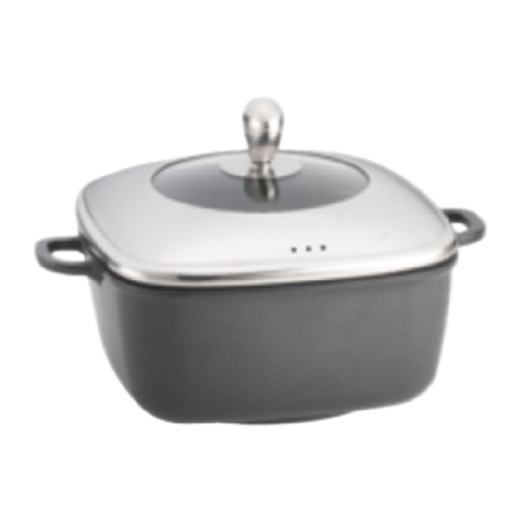 The Tablecraft CWDC1030 Induction Sauce Pan is a versatile kitchen tool, designed to meet the diverse needs of culinary professionals and home chefs alike. With a generous capacity of 5 quarts and precise dimensions of 10 inches by 10 inches by 4-1/2 inches, this square pan is perfect for preparing a variety of sauces and dishes. Constructed from high-quality stainless steel, it features robust cast handles that ensure safe handling and support during cooking. The included lid enhances its functionality, making it suitable for stove top, hot plate, gas, steam, induction, and oven use, with a heat tolerance of up to 450 degrees Fahrenheit. The pan's non-stick interior coating ensures easy food release and cleaning, while the high-temperature exterior coating adds to its durability. The die-cast aluminum construction provides excellent heat distribution, contributing to consistent cooking results. Additionally, the pan is dishwasher safe, offering convenience for busy kitchens. These features make the Tablecraft CWDC1030 a reliable choice for those seeking high performance and versatility in their cooking equipment, catering to a wide range of culinary applications and professional settings.