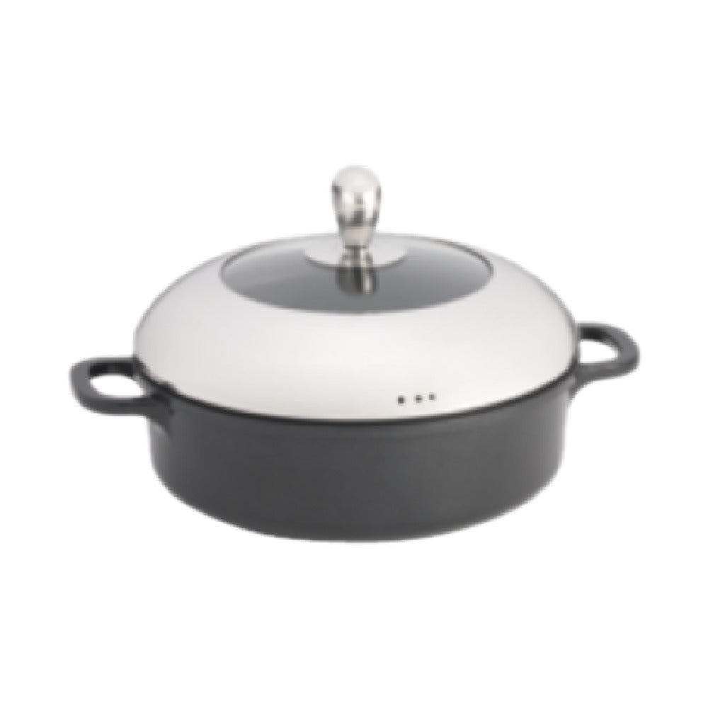 The Tablecraft CWDC1050 Casserole Dish 3 Qt. 10" Dia. X 3" is a versatile kitchen essential designed to meet diverse culinary requirements. With a 3-quart capacity, this round casserole dish is suitable for various cooking tasks. It features a lid and cast handles, ensuring ease of use and safety during handling. Crafted from die-cast aluminum, it boasts a non-stick interior coating and a high-temperature exterior coating, providing outstanding heat distribution and easy cleanup. This dish is heat safe up to 450°F, making it compatible with multiple heat sources including stove tops, hot plates, gas, steam, induction, and ovens. The inclusion of dishwasher safety further enhances its appeal for busy kitchens, enabling efficient and hassle-free maintenance. The Tablecraft CWDC1050 is ideal for professional chefs and home cooks alike, offering durability and multifunctionality for diverse cooking environments, making it a valuable addition to any culinary setting.