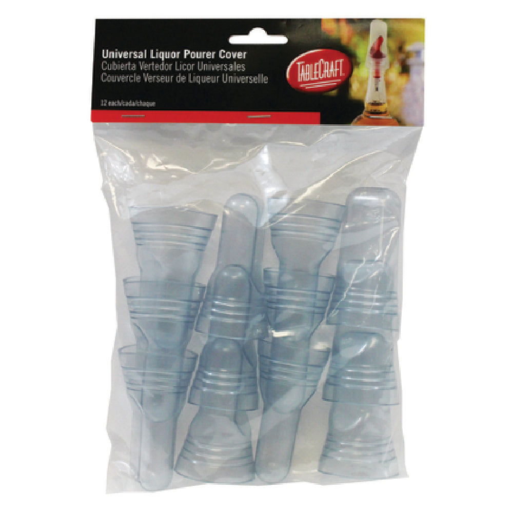 The Tablecraft DCL Cash & Carry Universal Liquor Pourer Cover - large - is an essential accessory designed for versatility across various segments of the beverage industry. Each pack contains 12 translucent, dishwasher safe, and BPA-free covers, with a minimum order of one pack. The large size of these pourer covers ensures compatibility with a wide range of liquor bottles, providing a universal solution for bar owners, restaurant managers, and event organizers looking to maintain cleanliness and prevent contamination. The translucent material allows for easy visibility of the pourer, while the dishwasher safe feature ensures effortless cleaning and maintenance, critical for high-volume operations. The BPA-free composition underscores a commitment to safety and health standards, making it a reliable choice for establishments prioritizing customer well-being. The combination of these technical features highlights the product's unique value proposition, offering a practical and hygienic tool for efficient bar management and operation in diverse industry settings.