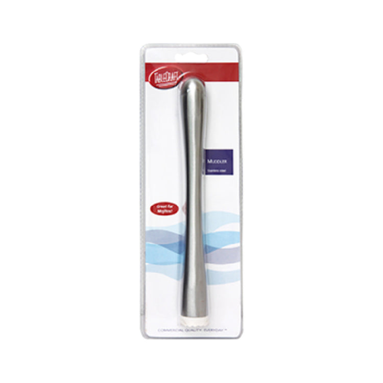 The Tablecraft H4258 Cash & Carry Muddler is an essential tool for any bar enthusiast or professional mixologist, featuring a sleek stainless steel design with an 8-3/4 inch length for comfortable handling and efficient muddling. Its durable construction is enhanced by a plastic tip, ensuring a gentle yet effective muddling process, perfect for extracting flavors from herbs, fruits, and spices in various beverages. The muddler is dishwasher safe, facilitating easy cleaning and maintenance for busy bar settings. Designed for bulk purchase, this product is available in multiples of six, making it an ideal choice for large-scale operations, catering services, or retail environments seeking to stock quality bar tools. The Tablecraft H4258 stands out in the market for its combination of robust construction and user-friendly features, making it a versatile tool that caters to the needs of both amateur cocktail makers and experienced bartenders. Its stainless steel body not only adds elegance to any bar setup but also promises longevity and reliability, ensuring it withstands the demands of frequent use. This muddler is a valuable asset for professionals seeking to enhance their beverage crafting efforts with precision and style.