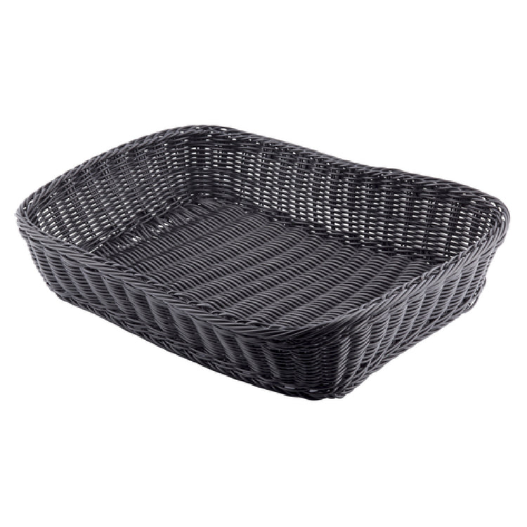 The Tablecraft M2489 Ridal Collection™ Basket is a meticulously crafted rectangular basket with dimensions of 16-3/4" x 11-3/4" x 3-1/2", making it a versatile choice for various display and serving needs. This basket is hand-woven and constructed from heavy solid cord polypropylene, ensuring durability and a sophisticated black finish. A standout feature of this basket is its heat resistance, capable of withstanding temperatures up to 150°F/65°C, making it suitable for use under heat lamps and safe for cleaning in dishwashers. These technical attributes position the Tablecraft M2489 as an ideal solution for food service establishments that require both aesthetic appeal and practical functionality. Additionally, its requirement to be purchased in multiples of six enhances inventory management for larger operations. The Ridal Collection basket's blend of practical features and stylish design caters to diverse market segments, including restaurants, catering services, and hotels, where presentation and reliability are paramount. Whether used for serving bread, displaying fresh produce, or organizing dining essentials, this basket delivers a balance of elegance and practicality, offering a reliable solution for industry professionals seeking quality and efficiency in their service environments.