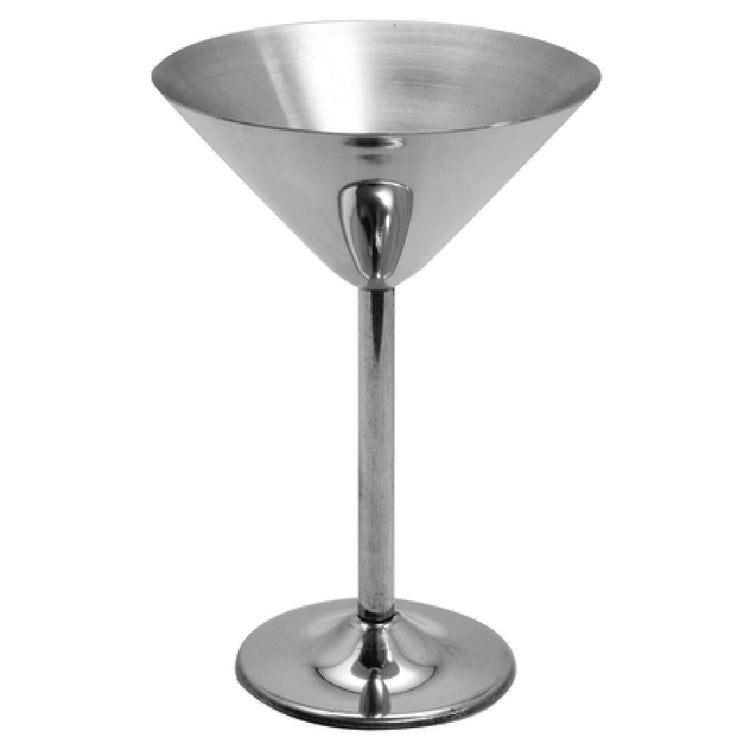 The Tablecraft MCSS10 Martini Cup is a meticulously crafted 10 oz. vessel, characterized by its 4-1/2" diameter and standing 7" tall. Designed with a stemmed base, this martini cup perfectly balances elegance with functionality, making it an excellent choice for upscale dining establishments, bars, and lounges aiming to enhance their drink presentation. Constructed from high-quality stainless steel, the cup features a mirror finish that adds a touch of sophistication to any setting. Its stainless steel composition not only elevates its aesthetic appeal but also ensures durability and longevity, suitable for high-volume environments. This martini cup is dishwasher safe, providing a practical solution for busy service areas that require efficient turnaround without compromising on cleanliness or quality. Whether used in high-end cocktails bars or stylish restaurant settings, the Tablecraft MCSS10 Martini Cup delivers a striking visual impact, while its sturdy build ensures it withstands the demands of frequent use, making it a valuable asset in any beverage service operation. Its dimensions and capacity make it versatile for serving a range of cocktails, and its polished design complements both modern and classic decor themes. This product is ideal for establishments looking to elevate their drink service with a premium, reliable martini cup.