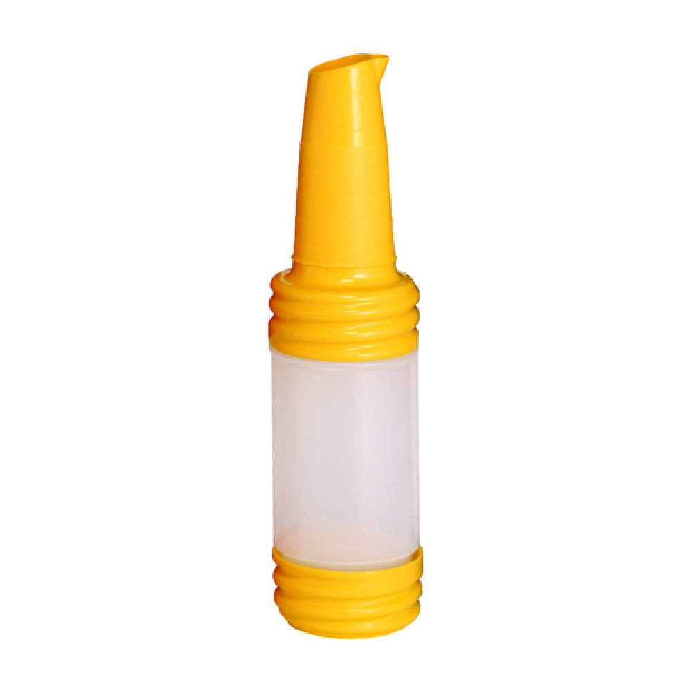 The Tablecraft N32VY PourMaster® Bottle with V-Neck Top™ is a versatile and essential tool for foodservice establishments requiring efficient and precise liquid dispensing. This particular model, distinguished by its yellow coloration, stands out with its V-Neck Top™, designed for controlled pouring and reduced spillage, enhancing operational efficiency in fast-paced environments. Its dishwasher-safe feature ensures ease of cleaning and maintenance, aligning with industry standards for hygiene and sanitation. The PourMaster® Bottle is suitable for a variety of market segments within the foodservice industry, including bars, restaurants, and catering services, where precise measurement and quick dispensing of liquids such as syrups, oils, and sauces are crucial. The durable construction of the Tablecraft N32VY guarantees longevity and consistent performance, making it a reliable asset in high-demand settings. Its distinct design not only facilitates easy handling but also supports quick identification and organization of different liquids, streamlining workflow and improving service speed. The combination of a robust build, user-friendly features, and functional design elements makes the Tablecraft N32VY PourMaster® Bottle with V-Neck Top™ a valuable addition to any professional kitchen or bar, meeting the diverse needs of the foodservice industry.