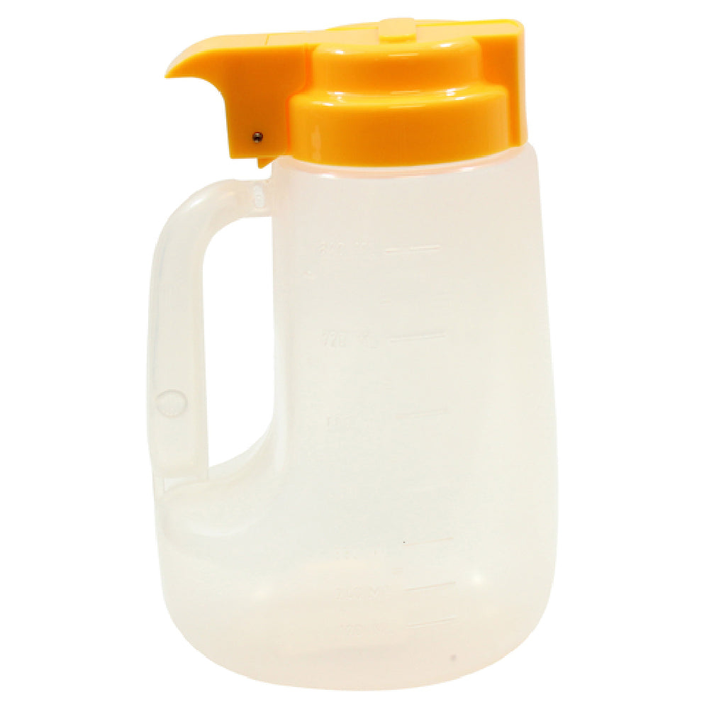 The Tablecraft PP32Y Option™ Dispenser 32 Oz. stands as a versatile and practical solution in food service operations, with its dimensions measuring 4-1/2" x 3-3/4" x 7-1/4". Constructed from clarified polypropylene, this dispenser is designed for durability and ease of use, featuring graduated markings that ensure precise measurement of contents. The plastic lid complements its robust structure, making it a reliable choice for various dispensing needs. Its yellow color adds a vibrant touch, identifiable in busy environments. Notably, this dispenser is BPA-free, addressing health concerns and ensuring safe usage. Dishwasher safe, it promotes ease of maintenance, vital for maintaining hygiene standards in food handling spaces. Proudly made in the USA, it aligns with quality manufacturing practices. A key consideration for buyers is that the Tablecraft PP32Y must be purchased in multiples of six, making it ideal for businesses requiring large quantities. Whether utilized in restaurants, cafeterias, or catering services, the Tablecraft PP32Y Option™ Dispenser combines practicality with safety, making it a valuable asset across various sectors within the food service industry.
