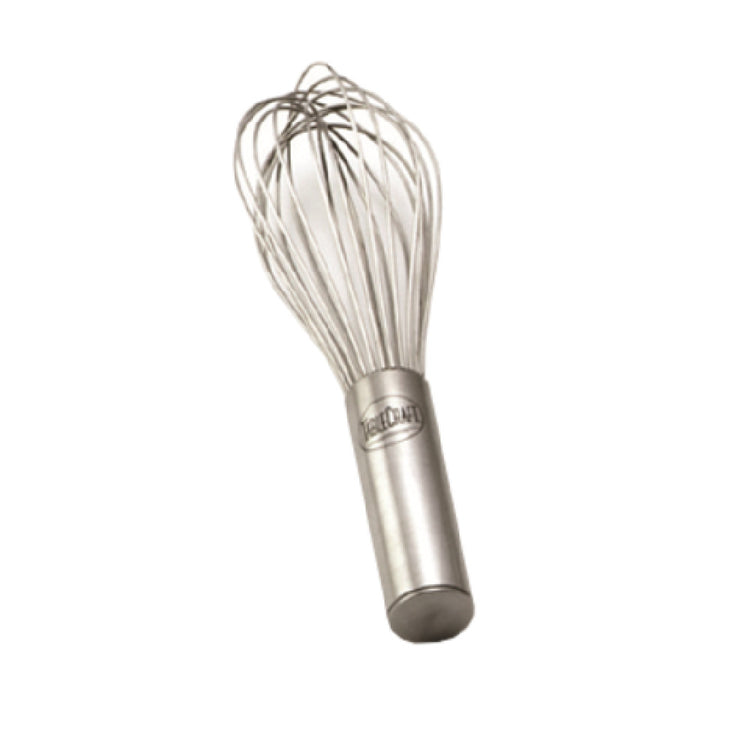 The Tablecraft SF12 French Whip 12" Sealed Wires is an expertly designed kitchen tool crafted for both professional chefs and culinary enthusiasts alike. This whip features a 12-inch length, providing optimal reach and control for a variety of mixing tasks in both commercial and home kitchens. Constructed from high-quality stainless steel, it ensures robustness and longevity, making it a reliable choice for demanding culinary environments. The sealed wires design is a standout feature, preventing liquid or food particles from becoming trapped, thereby enhancing hygiene and ease of cleaning. This thoughtful design also contributes to the whip's dishwasher-safe properties, allowing for effortless maintenance and ensuring it remains in pristine condition after repeated use. The Tablecraft SF12 French Whip is well-suited for creating smooth batters, whipping cream, and incorporating air into egg whites, showcasing its versatility across different cooking applications. Its durable construction and precise design make it an invaluable tool in any kitchen setting, from bustling restaurant environments to the home cook's countertop.
