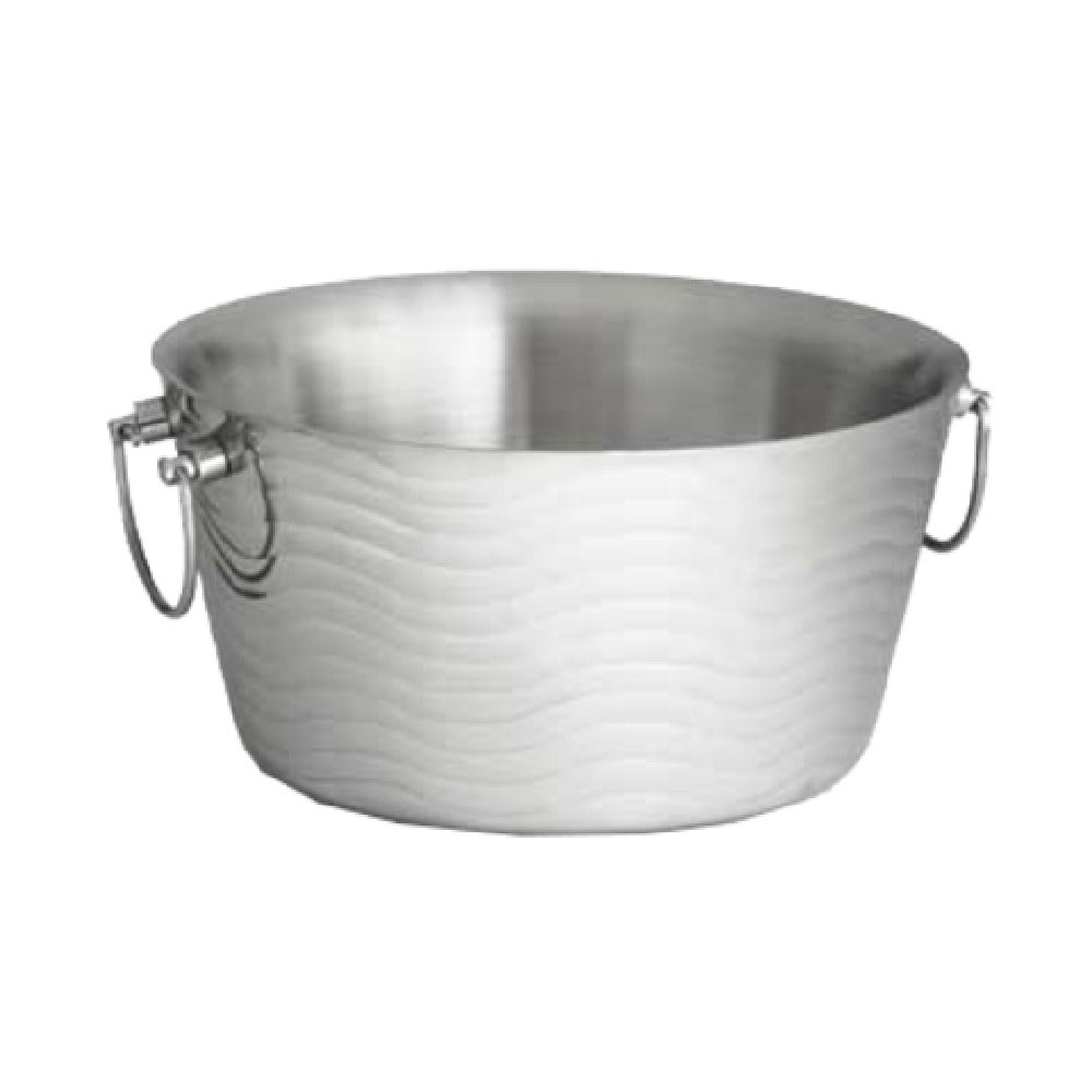 The Tablecraft WBT14 Wave Collection™ Beverage Tub 3 Gallon 14-1/2" X 7-1/2" is a versatile and durable solution for beverage service, perfect for catering events, parties, and restaurant settings. This remarkable beverage tub boasts a generous 3-gallon capacity, allowing for substantial storage of ice and beverages, making it ideal for high-volume occasions or smaller, intimate gatherings. Measuring 14-1/2" in diameter and 7-1/2" in height, this round beverage tub offers ample space while maintaining a compact footprint for easy placement in various serving environments. Crafted from resilient stainless steel, the double-wall construction not only provides insulation to maintain the temperature of its contents but also ensures durability and longevity, resisting rust and wear over time. The dishwasher-safe feature of the Tablecraft WBT14 adds convenience, allowing for easy cleaning and maintenance, which is crucial for busy hospitality settings. Its sleek and contemporary design from the Wave Collection™ adds a touch of elegance to any beverage presentation, enhancing the aesthetic appeal of both casual and formal events. This beverage tub serves as a reliable and stylish choice for different market segments within the food and beverage industry, balancing functionality with visual appeal.
