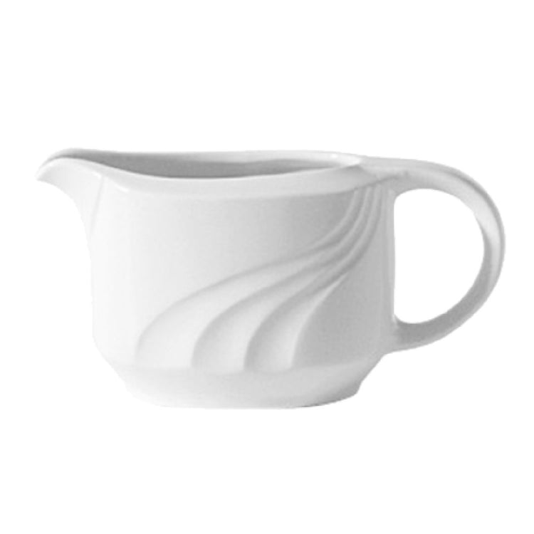 The Tableware Solutions USA 21CCEVE068 Jug is a compact and efficient serving solution with a volume capacity of 3-1/2 oz. (0.10 L), crafted to meet diverse demands in the culinary and hospitality sectors. This jug, part of the Everest collection by Continental, is meticulously designed with scratch-resistant properties, offering exceptional durability and longevity, ideal for high-traffic environments. Its compatibility with both ovens and microwaves enhances its versatility, making it suitable for various food service applications, from reheating to serving. Additionally, the jug's dishwasher-proof nature simplifies cleaning, ensuring it maintains its pristine condition even after repeated use. The white finish complements any table setting, providing a clean and professional appearance. Market segments such as restaurants, hotels, and catering services can benefit from its robust design and practical features. The jug is offered as a special order item, requiring consultation with a representative to access the exclusive Life Edge Chipping Warranty, which underscores its premium quality. Packed in sets of 12 per case, the Tableware Solutions USA 21CCEVE068 Jug is an excellent choice for businesses seeking a reliable, high-quality tableware option that stands the test of time in demanding service scenarios.