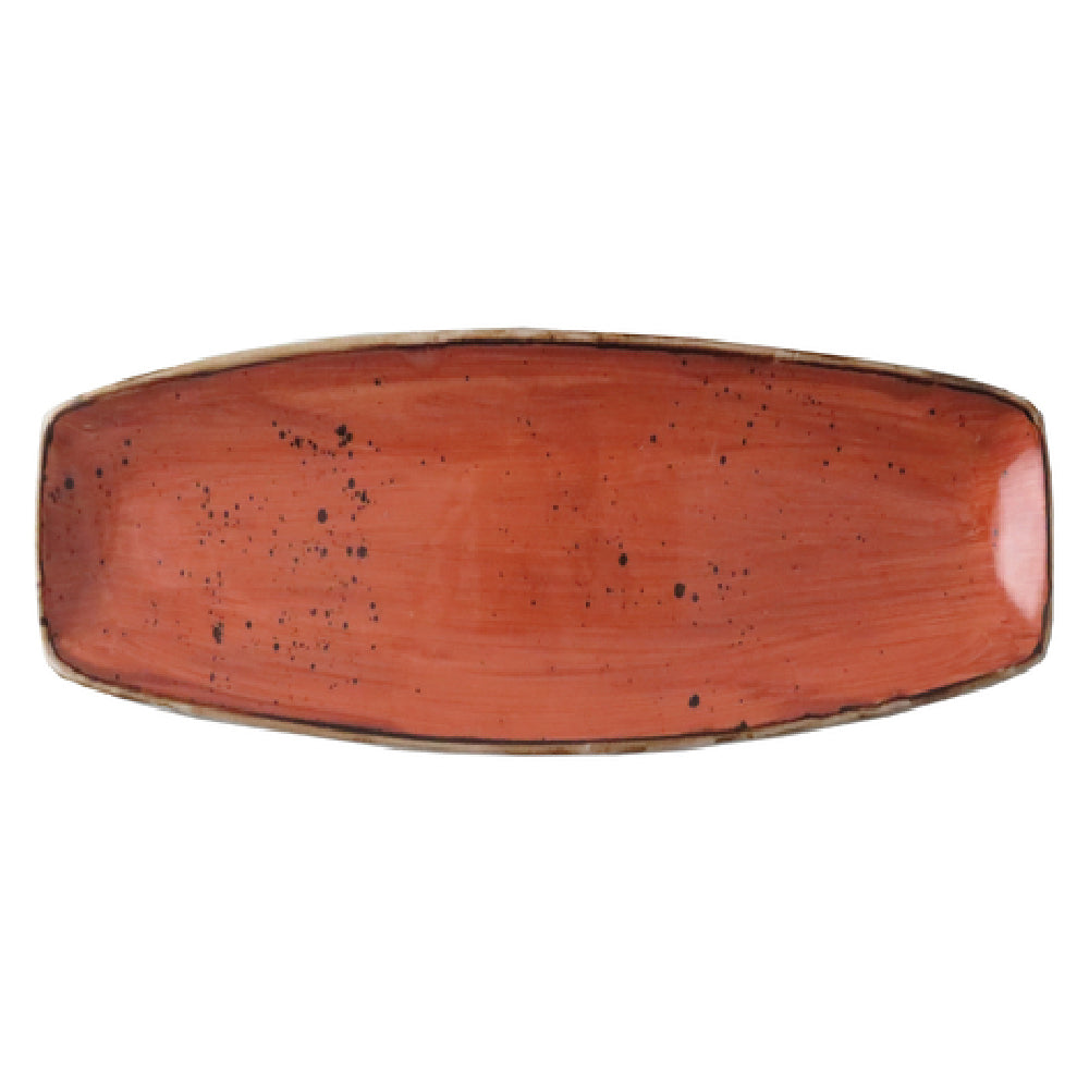 The Tableware Solutions USA 32CURV193-04 Platter is a versatile and resilient serving piece measuring 13-3/4 inches by 7-3/4 inches. Its rectangular shape with a distinctive curved design makes it a stylish addition to any dining setting. Crafted with a scratch-resistant surface, this platter ensures durability and long-lasting use in both commercial and residential environments. Its oven and microwave-safe features provide flexibility for warming and serving, while being dishwasher-proof adds convenience for easy cleaning and maintenance. Part of the Rustics by Continental collection, it comes in a terra color that brings a rustic charm to the table. This platter also includes a Life Edge Chipping Warranty, offering peace of mind against accidental damage in everyday use. Packed at 12 pieces per case, it is an ideal choice for caterers, restaurants, and hospitality industries that require bulk purchase options. The combination of technical durability and aesthetic appeal makes the Tableware Solutions USA 32CURV193-04 Platter a valuable asset for food service professionals seeking quality tableware that can withstand the rigors of frequent use while enhancing presentation.