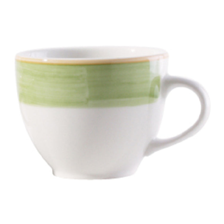 The Tableware Solutions USA 51COGRE032 Tea Cup 8 Oz. (0.24 L) is a meticulously crafted piece, designed to blend durability with elegance, making it an ideal choice for both professional and domestic settings. This tea cup is part of the Cosmo by Continental line and stands out with its scratch-resistant surface, ensuring longevity and maintaining its pristine appearance through regular use. With a capacity of 8 ounces (0.24 liters), it is perfectly proportioned for a standard serving of tea. The cup’s green hue adds a touch of sophistication, making it a visually appealing addition to any table setting. Functionality is a key feature, as the cup is both oven and microwave safe, offering versatility in food service environments where reheating might be necessary. Additionally, its dishwasher-proof nature ensures ease of cleaning, crucial for high-traffic hospitality or catering businesses. This tea cup is available as a special order, emphasizing its exclusivity, and comes with a Life Edge Chipping Warranty, providing peace of mind with every purchase. Packed 24 each per case, it suits bulk purchasing needs for restaurants, cafes, and other food service industry segments, all while maintaining the highest standards of quality and design integrity.