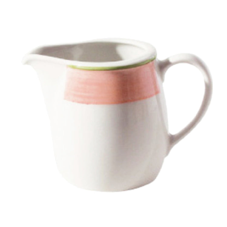 Tableware Solutions USA 51COPIN067 Creamer 9 Oz. (0.27 L) Scratch Resistant is a highly durable and versatile product designed for various dining and hospitality environments. This creamer boasts a capacity of 9 ounces (0.27 liters), making it suitable for serving individual portions of cream or milk. Its scratch-resistant quality ensures longevity and maintains its aesthetic appeal even in high-usage settings, making it perfect for restaurants, cafes, and hotels. The creamer is part of the Cosmo line by Continental, offering a unique pink color that adds a touch of elegance and style to any table setting. It is designed to be oven and microwave safe, allowing for quick reheating or warming of liquids, which is particularly beneficial in fast-paced service environments. Additionally, the dishwasher-proof feature ensures easy and efficient cleaning, saving valuable time for busy kitchen staff. The product is available as a special order, which highlights its exclusivity, and includes a Life Edge Chipping Warranty, offering peace of mind regarding its durability. Each case contains twelve creamers, providing ample supply for establishments that require bulk purchase. This creamer is an excellent choice for those seeking a reliable and stylish tableware solution.