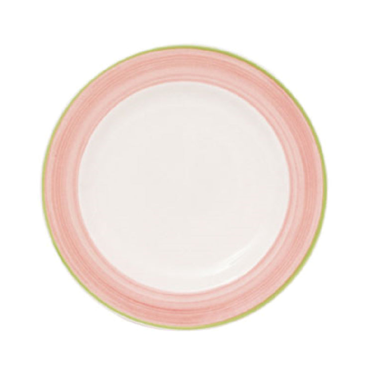 Tableware Solutions USA 55COPIN009 Plate 7-4/5" Dia. Round is a meticulously crafted piece designed to meet the diverse needs of the food service industry. This plate features a 7-4/5 inch diameter, making it suitable for a variety of dining settings, from casual cafes to upscale restaurants. Its round shape with a wide rim not only adds a touch of elegance but also enhances its functionality by preventing spills and accommodating generous portions. Constructed to be scratch resistant, this plate maintains its pristine appearance even after frequent use, ensuring long-lasting durability. It is both oven and microwave safe, providing versatility in food presentation and preparation. The dishwasher-proof characteristic of this plate simplifies cleaning, making it an efficient choice for busy food service environments. The design includes a white base with a distinctive pink rim, adding a subtle yet unique aesthetic touch. Furthermore, this plate is part of the Cosmo by Continental line and offers the assurance of a Life Edge Chipping Warranty, reflecting its high-quality craftsmanship. Packed in cases of 24, it is an optimal choice for establishments requiring bulk purchases. This plate is a reliable option for those seeking practicality combined with style in their tableware solutions.