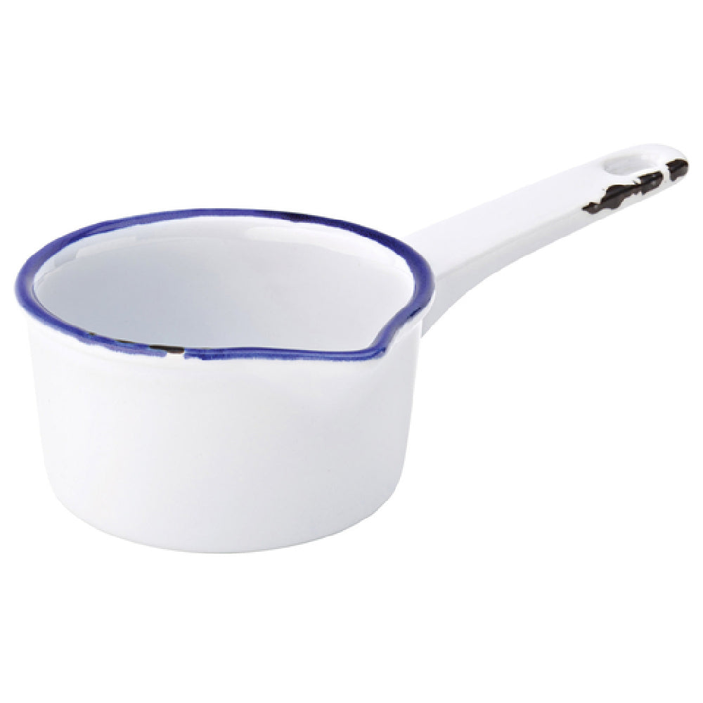 Tableware Solutions USA CT6004 Milk Pan 3-3/4" Blue is a distinctive kitchen essential designed to meet the diverse needs of culinary professionals and home cooking enthusiasts alike. This milk pan, part of the Avebury Creative Table collection, stands out with its compact size of 3-3/4 inches, making it an optimal choice for precise cooking tasks where control and efficiency are paramount. The striking blue color adds a touch of elegance to any kitchen setting, enhancing both functionality and aesthetic appeal. As a special order item, it caters to niche markets that prioritize unique and customized kitchenware. The CT6004 Milk Pan is packed by 12 each per case, highlighting its suitability for both individual use and bulk purchases by restaurants or catering businesses seeking uniformity and consistency in their kitchen equipment. This product encapsulates the fine blend of style and practicality, appealing to a broad spectrum of users ranging from professional chefs who require reliable and durable tools, to design-conscious homeowners who appreciate kitchenware that complements their modern kitchen décor. The Tableware Solutions USA CT6004 offers a specialized solution in the realm of tableware, reflecting the brand's commitment to quality and innovation in culinary tools.