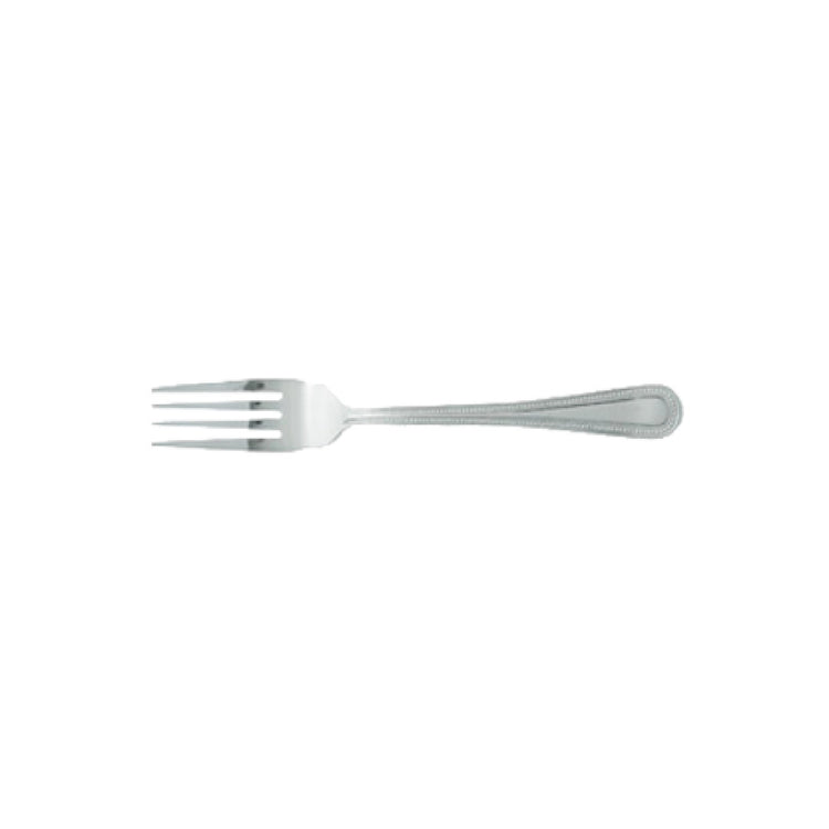 The Tableware Solutions USA F00306 Dessert Fork is a meticulously crafted utensil, measuring 7-1/5 inches in length, designed to elevate the dining experience with its refined aesthetic and practical functionality. Made from 18/0 stainless steel, this fork offers an ideal balance of durability and a polished appearance, ensuring longevity without compromising on style. The beaded design adds a touch of elegance, making it a versatile choice suitable for both casual dining settings and sophisticated events. Packaged in sets of 12 per case, it caters to the needs of restaurants, catering businesses, and home dining where quality and consistency are paramount. The Tableware Solutions USA F00306 Dessert Fork is part of the TWS Cutlery collection, ensuring compatibility with a wide array of table settings while maintaining a cohesive and professional look. Whether used in bustling restaurant environments or intimate dinner parties, this dessert fork seamlessly blends form and function, providing a reliable and stylish option for serving desserts and small delicacies. Its stainless steel composition ensures resistance to corrosion and ease of maintenance, making it a practical choice for high-volume usage. This product perfectly meets the demands of industry professionals and home enthusiasts who value quality cutlery.