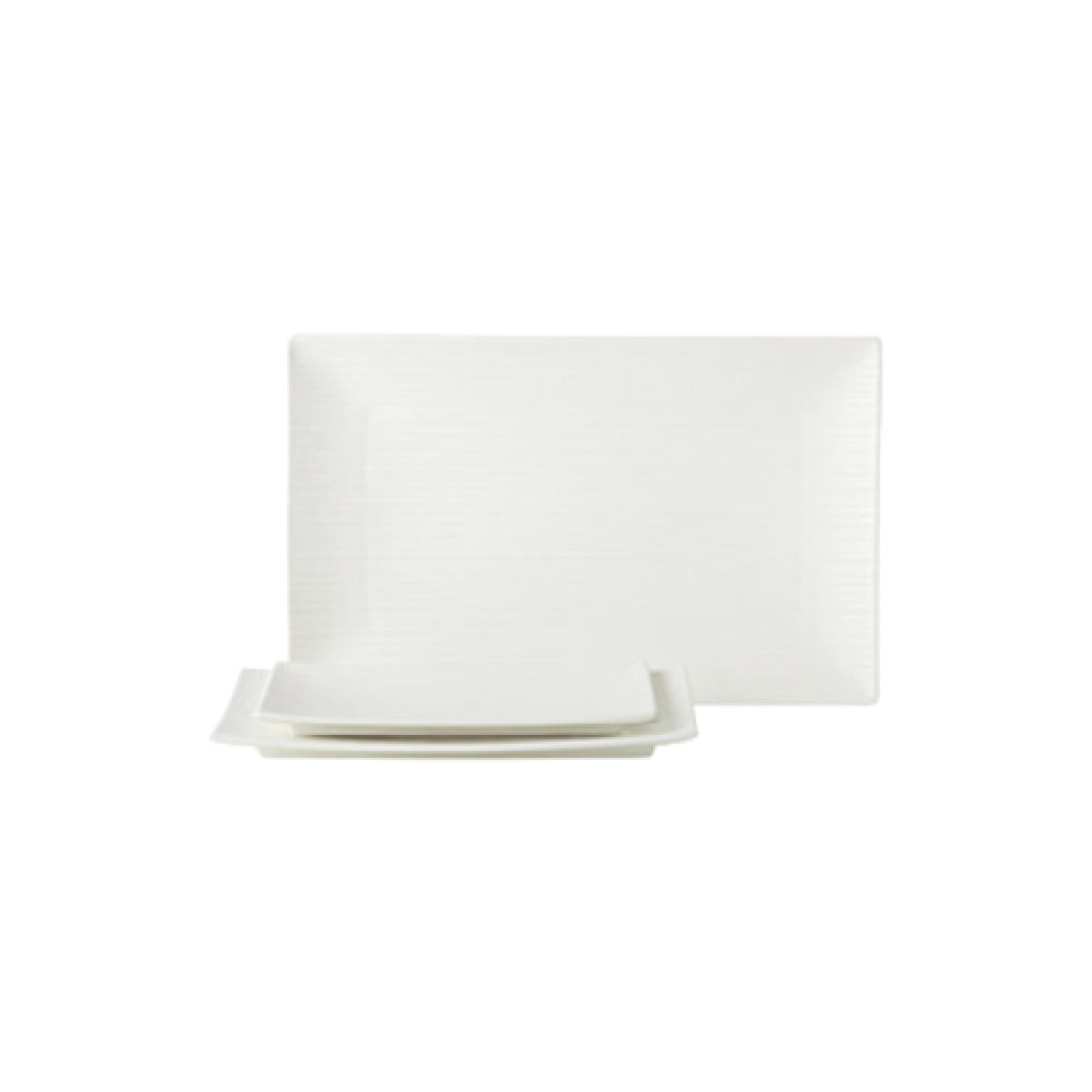 Tableware Solutions USA K90003 Platter 11-1/2" x 5-1/4" Rectangular is a meticulously designed piece of tableware catering to a variety of market segments within the dining and hospitality industry. This platter, with its precise dimensions of 11-1/2 inches by 5-1/4 inches, offers a sleek and modern rectangular shape that is ideal for creative table settings and presentations. Manufactured and packed efficiently in sets of six per case, it supports bulk purchasing for larger establishments, ensuring consistency and uniformity across service areas. The design effectively balances aesthetics with functionality, making it suitable for both casual and upscale dining experiences. Whether used in restaurants, catering services, or at home, the K90003 platter enhances the presentation of culinary creations. Its structured form provides stability for serving, while its size accommodates a versatile range of dishes. This product exemplifies Tableware Solutions USA's commitment to quality and innovation in tableware, delivering value through its practical design and premium construction. It is a reliable choice for food service professionals seeking to elevate their service with stylish yet practical serving solutions.