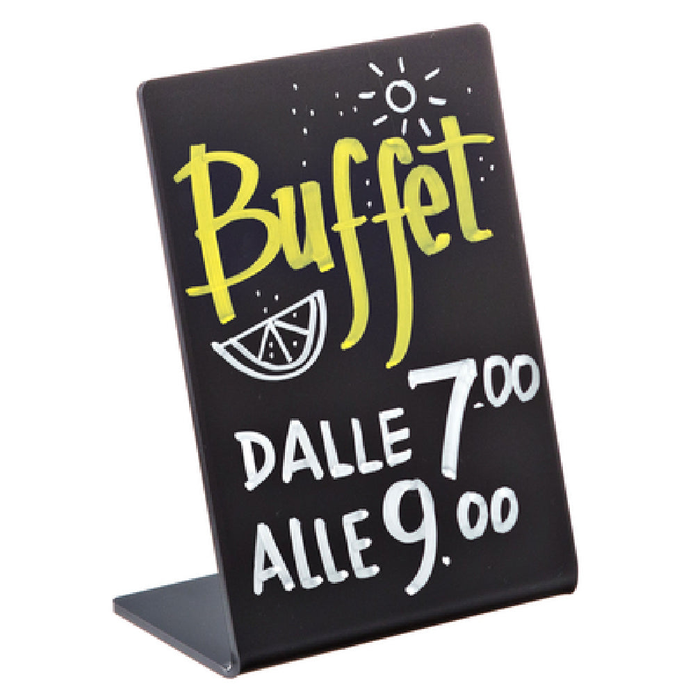 The Tableware Solutions USA T5270 Table Chalkboard is a compact, versatile display tool measuring 4-1/4" x 5-1/2" x 3-1/2". Its rectangular shape and black color provide a sleek and professional appearance, making it suitable for various settings, including cafes, restaurants, and retail stores. This chalkboard is a practical solution for conveying messages, displaying menus, or highlighting promotions and events. Packed individually, it ensures that each piece arrives in pristine condition, ready for immediate use. The Tableware Solutions USA T5270 offers a unique value proposition for businesses across different segments, serving as an effective communication medium that blends functionality with aesthetic appeal. Its size makes it ideal for tabletop use without occupying excessive space, allowing easy placement amongst other tableware items. The design of the board caters to diverse market needs, from enhancing dining experiences in hospitality environments to serving as attractive signage in commercial spaces. The T5270, branded under Leone, reflects a commitment to quality and design, making it a reliable choice for establishments seeking to elevate their presentation and customer engagement strategies.