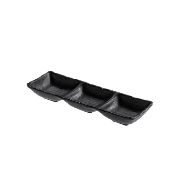 Tableware Solutions USA, T8204, Three compartment melamine tray, 3 oz/ compartment, 27 x 9 cm (10.6 x 3.5"), height 3.5 cm (1.3"), rectangle, black, dishwasher safe, Leone (Packed By: 1 Each)