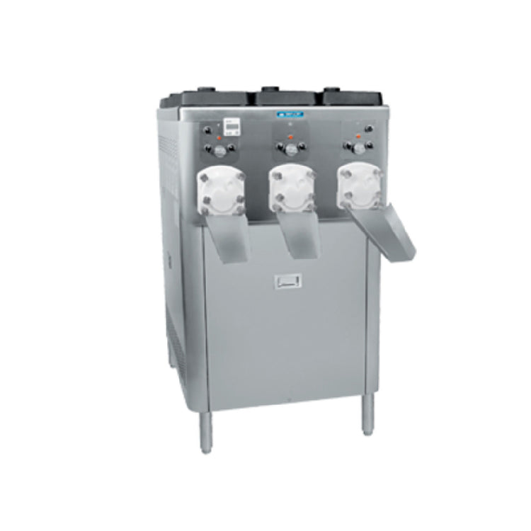 Taylor Company (Middleby), C043-DISPENSER, Continuous Custard Dispenser, floor model, designed for remote refrigeration, (3) 30 qt mix hoppers, separate hopper refrigeration, indicator lights, product chute, mix flow regulator, stainless steel finish, (1) 1,000 BTU/hr R134A, requires three remote condensing units, (3) 2 HP motors, NSF, cULus listed (Go to the Taylor web site link to locate your distributor for pricing & warranty information)