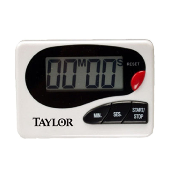 The Taylor 5822 Memory Timer Digital 0.8" LCD Readout is a compact and versatile timing device suited for a variety of precision timing needs across different industries. Featuring a digital display with a clear 0.8-inch LCD readout, this timer ensures easy visibility and accuracy when tracking time. It is capable of timing up to 99 minutes and 59 seconds, making it suitable for tasks requiring short to moderate time intervals. The device's count up/down feature adds flexibility, allowing users to either time events as they progress or count down to zero. Additionally, the recall/memory function provides the ability to store and retrieve previous timing settings, enhancing efficiency and convenience for repetitive tasks. This memory timer is designed for versatile positioning with a clip, magnet, or stand, making it adaptable to different working environments and preferences. It operates on a single AAA battery, which is included, ensuring that the Taylor 5822 is ready for immediate use. Whether in a professional kitchen, laboratory, or office setting, the Taylor 5822 Memory Timer Digital 0.8" LCD Readout offers practical and reliable time management support for focused and organized workflows.