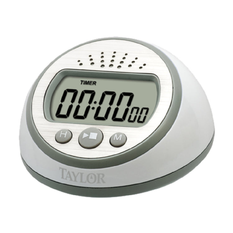 The Taylor 5873 Timer-Clock Digital 23 Hours is a versatile timekeeping device suitable for various professional and personal environments. With a timer range extending to 23 hours, 59 minutes, and 59 seconds, it accommodates both long-term and short-term timing needs with precision. This digital timer-clock features a continuous ring that can reach up to 95 decibels, ensuring that alerts are unmistakable even in busy settings. Its count up and count down capability provides flexibility for a range of timing tasks, making it an essential tool for kitchens, laboratories, or any setting requiring precise time management. Constructed from durable plastic, the Taylor 5873 is both lightweight and robust, designed to withstand daily use. The product is powered by two AAA batteries, which are conveniently included with the purchase, ensuring it is ready for immediate operation. Its sleek white finish allows it to blend seamlessly into any décor, while its compact design makes it a practical choice for spaces with limited room. The Taylor 5873 Timer-Clock is an excellent choice for professionals seeking a reliable and efficient timing solution that combines functionality with ease of use across multiple industry segments.