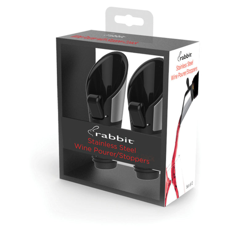 The Taylor W6128N Rabbit® Flipper Pourer/Stopper is an innovative solution for wine enthusiasts and professionals seeking an efficient and versatile wine accessory. This air-tight wine stopper is meticulously designed to fit all bottle sizes, providing a universal application across various wine collections. The flipper mechanism allows for dual functionality - flip to open for a drip-free pourer, ensuring a clean and seamless wine-serving experience, and flip to close to maintain the wine's freshness by sealing the bottle air-tight. Constructed with durable stainless steel, this pourer/stopper set is built to withstand regular use while maintaining its sleek appearance. The inclusion of a dishwasher-safe feature emphasizes convenience, making cleaning effortless and preserving the product's integrity over time. Sold in a set of two, the Taylor W6128N Rabbit® Flipper Pourer/Stopper is an ideal choice for both casual wine drinkers and professional sommeliers, offering a blend of practicality and style. Its design not only caters to individual consumers but also suits the needs of restaurants and hospitality businesses that require reliable wine preservation solutions. This product effectively bridges the gap between functionality and elegance, making it a valuable addition to any wine lover's toolkit.