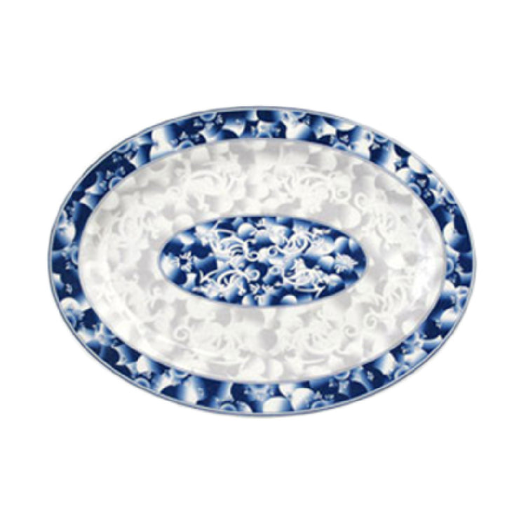 The Thunder Group 2010DL Platter - 9-7/8" X 7-1/4" Oval is a meticulously crafted serving solution designed to meet the rigorous demands of hospitality and food service environments. Constructed from melamine, this platter is break-resistant, ensuring durability and longevity even in high-traffic settings. Its oval shape, coupled with the dimensions of 9-7/8 inches by 7-1/4 inches, provides ample space for creatively presenting dishes while maintaining a compact form. The platter's aesthetic is elevated by the Blue Dragon design, adding a touch of elegance to any table setting. Additionally, it is dishwasher safe, facilitating easy and efficient cleaning in busy kitchens. The Thunder Group 2010DL Platter is BPA-free, prioritizing health and safety with every use. Further enhancing its appeal, this platter is NSF certified, guaranteeing that it meets the highest public health and safety standards. Ideal for restaurants, catering services, and other food service operations, this platter combines practicality with style, ensuring that it not only serves as a functional piece but also enriches the visual presentation of culinary creations. Its robust features make it a reliable choice for professionals seeking quality and performance in their serving ware.