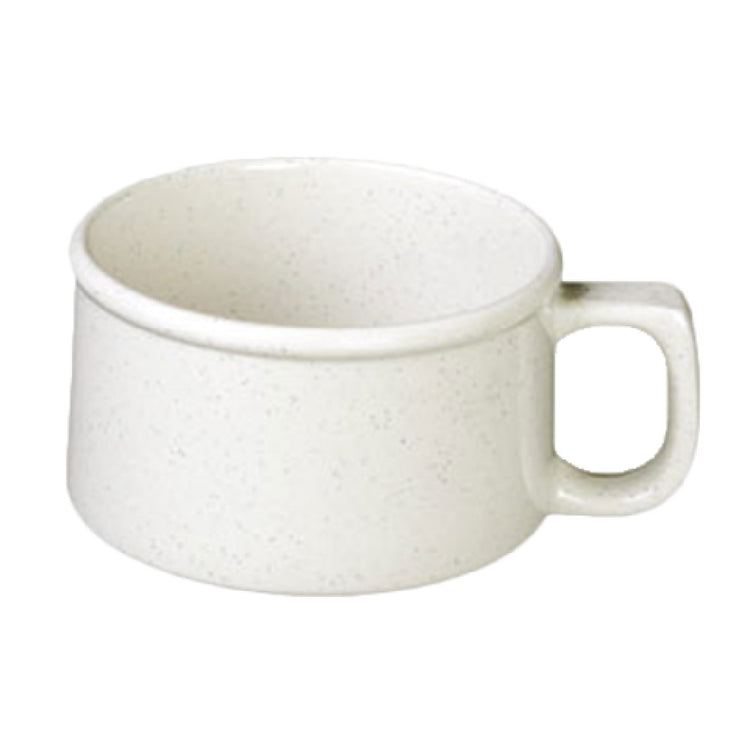 The Thunder Group AD9016WS Soup Mug - 10 Oz. 4" Dia. is a meticulously crafted dining essential, designed to meet the rigorous demands of both domestic and commercial settings. With a 10-ounce capacity, this soup mug is perfectly sized for a satisfying serving of your favorite broth or bisque. Its 4-inch diameter offers a compact yet generous space for various soup types, enhancing the dining experience. The inclusion of a c-handle ensures a comfortable and secure grip, making it easy to carry and handle even when filled with hot liquid. Constructed from high-quality melamine, this soup mug is both break-resistant and dishwasher safe, offering a durable solution for everyday use. Its BPA-free composition ensures it is safe for all family members, aligning with health-conscious dining standards. The elegant San Marino design adds a touch of sophistication to any table setting, while its NSF certification confirms its adherence to stringent safety and quality regulations. This soup mug is an ideal choice for restaurants, catering services, and home kitchens, appealing to those who prioritize durability, safety, and style in their diningware selections.