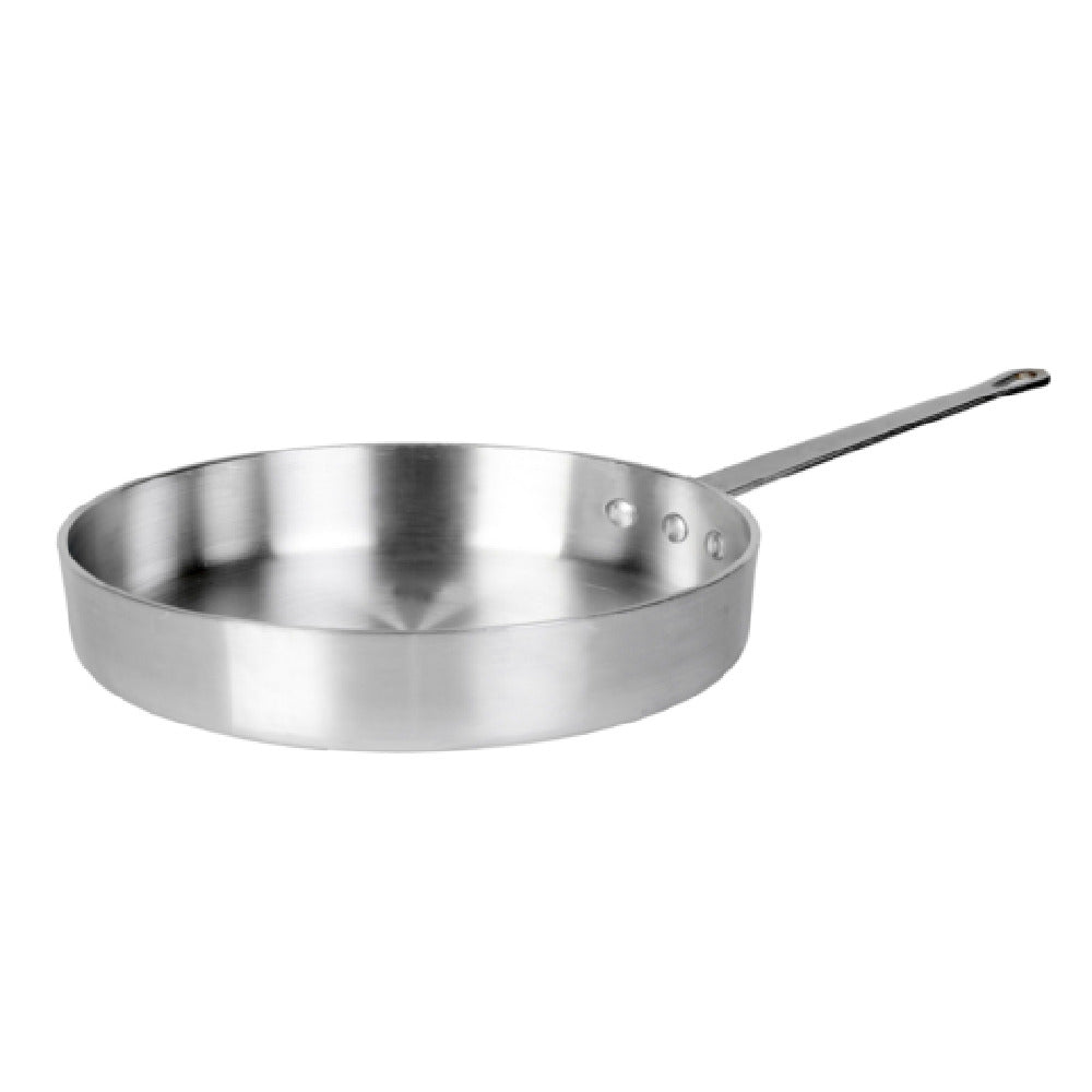 The Thunder Group ALSAP004 Saute' Pan - 7 Quart Capacity Flat Bottom is an expertly crafted kitchen essential, ideal for culinary professionals and home cooks who prioritize quality and performance. This saute' pan boasts a substantial 7-quart capacity, making it suitable for preparing large meals or batch cooking. With its flat bottom design, it ensures even heat distribution across the cooking surface, which is crucial for achieving consistent results. The rounded edges of the pan further enhance its versatility, facilitating easy stirring and reducing food buildup in corners. Crafted from high-grade aluminum, the pan's mirror-finish not only adds a touch of elegance to your cookware collection but also ensures quick and efficient heating. The riveted handle provides a sturdy and secure grip, enhancing safety and control while maneuvering the pan. This pan is NSF certified, underscoring its compliance with high standards of public health and safety, making it an excellent choice for both commercial kitchens and residential use. Whether you're sautéing vegetables, searing meats, or simmering sauces, the Thunder Group ALSAP004 Saute' Pan is a reliable and durable tool designed to meet the demands of diverse cooking environments.