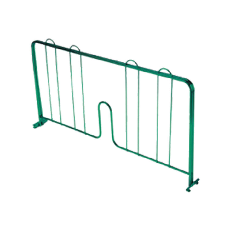 The Thunder Group CMDE018 Shelf Divider 18"L Pressure-fit is a versatile and practical accessory designed for optimizing storage solutions across various commercial and industrial settings. This shelf divider, measuring 18 inches in length, features a pressure-fit mechanism, ensuring a secure and stable installation on compatible shelving units without the need for additional tools or hardware. The epoxy-coated finish not only enhances its durability but also provides resistance against corrosion, making it suitable for environments where hygiene and long-term reliability are paramount. Available in a distinctive green color, this shelf divider is not only functional but also adds a touch of organization by visually segmenting storage areas. Its NSF certification underscores its compliance with stringent public health and safety standards, making it an ideal choice for use in food service operations, retail establishments, and any setting where organized and efficient storage is crucial. The Thunder Group CMDE018 is particularly beneficial in maximizing vertical space and maintaining order on crowded shelves, effectively catering to the diverse needs of kitchen managers, inventory specialists, and retail display coordinators. This practical tool stands out for its simple yet effective design, making it an indispensable component in professional storage and organization systems.