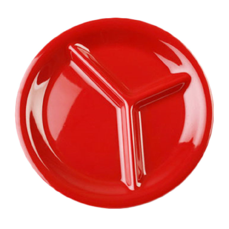 The Thunder Group CR710PR Compartment Plate 10-1/4" dia. round is a meticulously designed serving solution, tailored to meet the needs of diverse dining environments. This round plate features a 10-1/4 inch diameter and is furnished with three-wells, allowing for the efficient separation of food items. Crafted from robust melamine, this plate is break-resistant, ensuring longevity and durability in high-traffic areas such as cafeterias, casual dining establishments, or institutional settings. The vibrant pure red hue of this compartment plate adds a striking aesthetic to any table setting, while its BPA-free composition underscores a commitment to safety and environmental responsibility. Designed with practicality in mind, the Thunder Group CR710PR is dishwasher safe, facilitating easy and efficient cleaning. Additionally, its NSF certification assures users of its adherence to stringent public health and safety standards. This product seamlessly combines functional design with rigorous safety features, making it a valuable addition to any food service operation looking to enhance meal presentation while maintaining high standards of safety and hygiene.