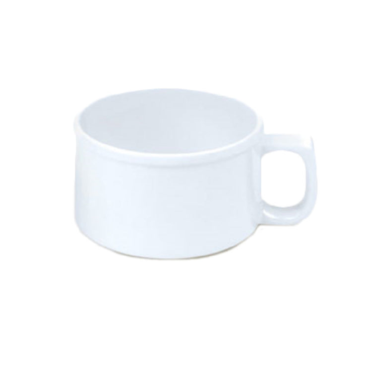 The Thunder Group CR9016W Soup Mug is a versatile and reliable choice for food service establishments and households alike. With a capacity of 10 oz. and a 4-inch diameter, this soup mug is perfectly sized for serving individual portions of soup, stews, and a variety of hot beverages. Designed with a convenient C-handle, it offers an easy grip, enhancing the user experience. Crafted from durable melamine, this soup mug is break-resistant, making it an excellent option for busy environments where durability is crucial. Its white color provides a clean and classic look that complements any table setting. Importantly, the Thunder Group CR9016W is BPA free, ensuring it meets safety standards for health-conscious users. As a testament to its quality, this soup mug is NSF certified, signifying its compliance with strict public health protection standards. It is also dishwasher safe, enabling efficient and hassle-free cleaning. Whether in a bustling restaurant, a cozy café, or at home, this soup mug's combination of practicality and safety makes it an indispensable item in any kitchen. Its construction from robust materials ensures longevity, providing a cost-effective solution for serving soups and hot liquids across different market segments.